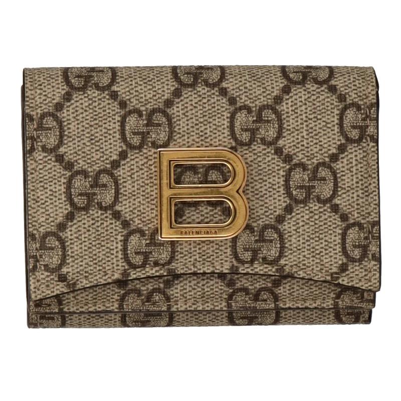 Pre-owned Gucci Card Case Wallet, The Hacker Project, Balenciaga 681700 KGD0T 9742 GG Supreme, Women's, Beige