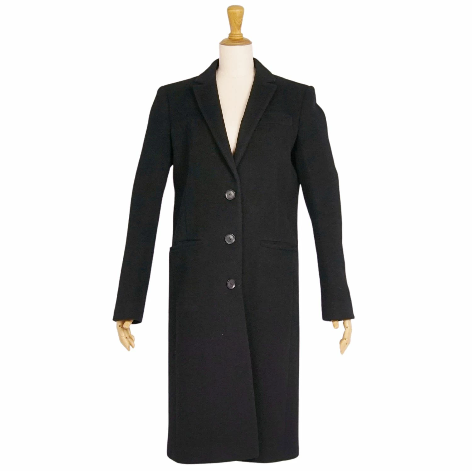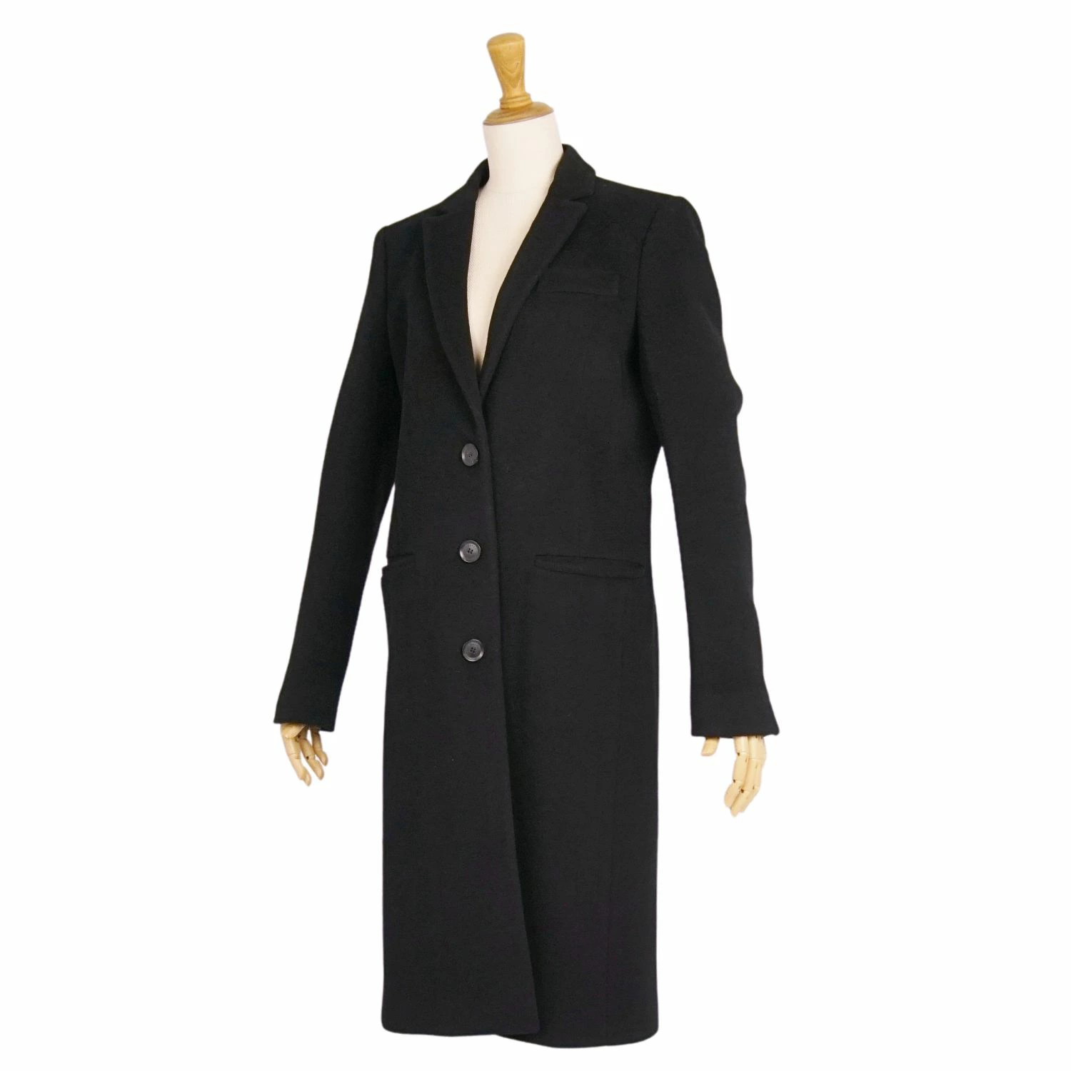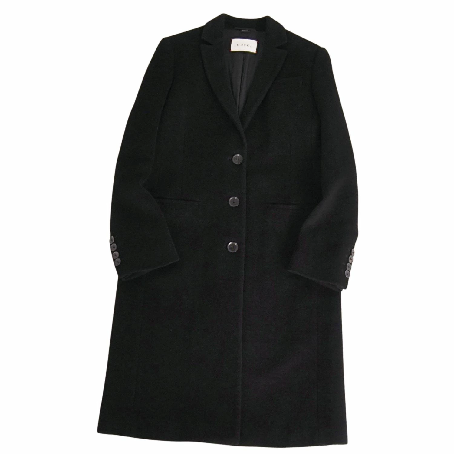 Pre-owned Gucci Chesterfield coat, long wool coat, solid color, women's size 40 (equivalent to M), black. Excellent condition.