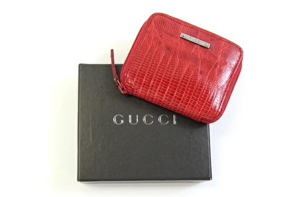 Pre-owned Gucci Coin Case 115276 in Red Lizard Exotic Leather. Mini Wallet, Compact Wallet with Logo. Vintage GUCCI.
