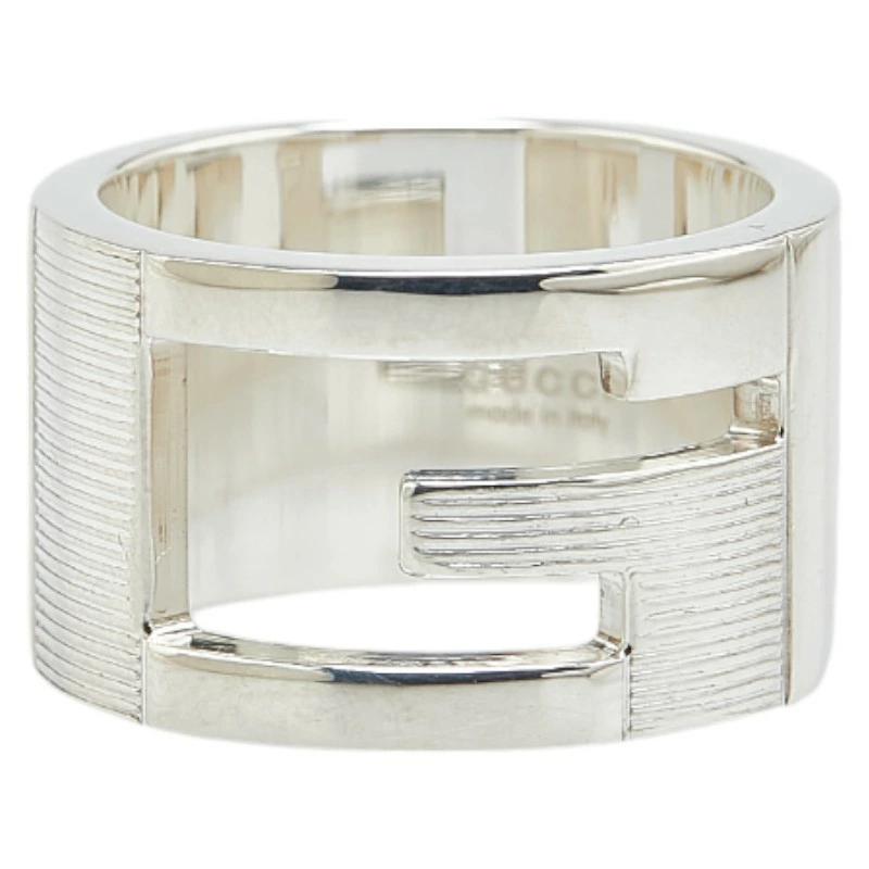 Pre-owned Gucci Cutout G Logo Ring #11, SV925 Silver, Women's.
