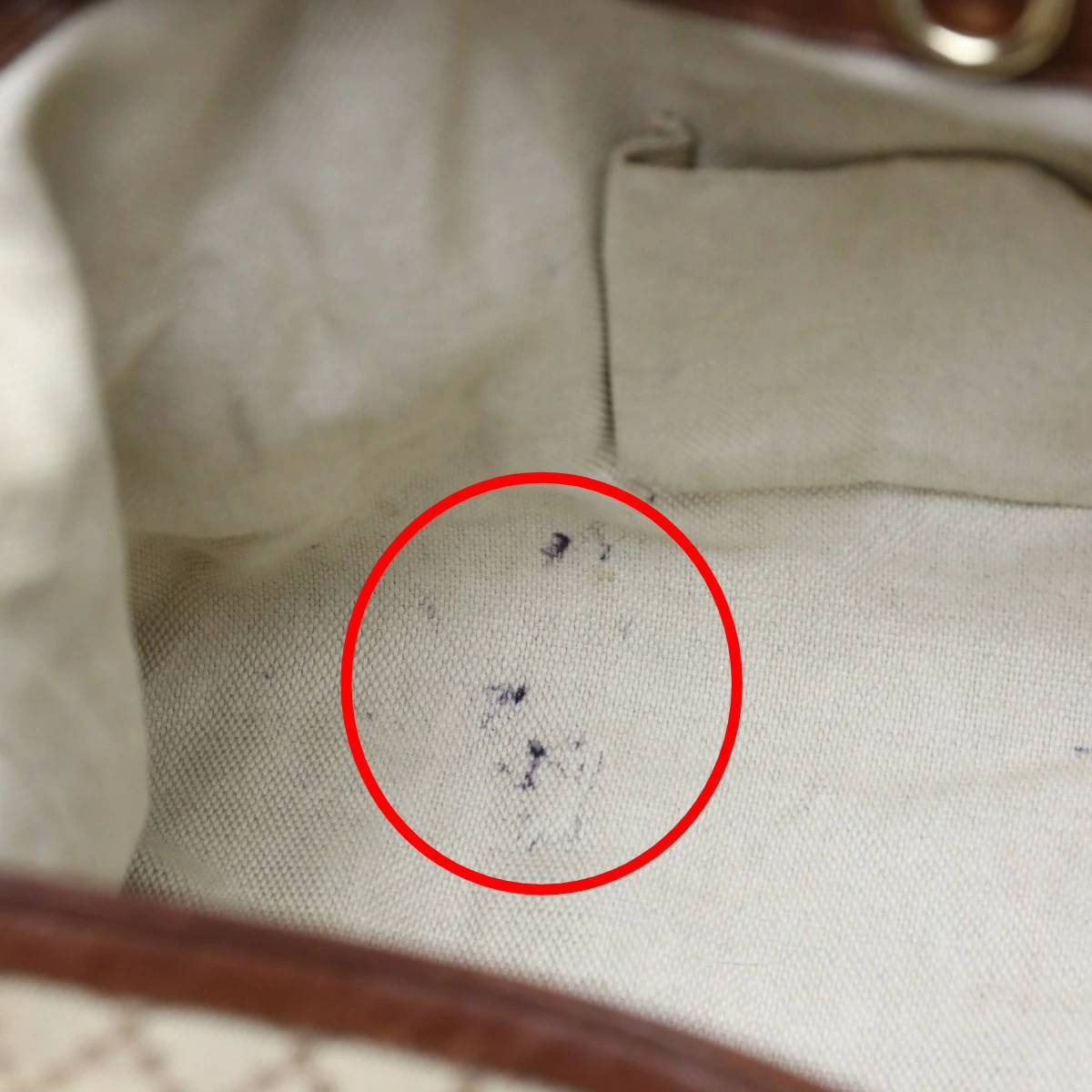 | 外側 | ランク:BC 表面:スレ、シワ 形状:やや型崩れ ハンドル・ストラップ:スレ、色褪せ コーナー:スレ 四角にスレあり(画像5~7枚目参照) ショルダー部分にスレあり(画像8枚目参照) ハンドル部分に色褪せあり(画像9枚目参照) 表面ベル地部分に色褪せ・シワあり(画像10,11枚目参照) |