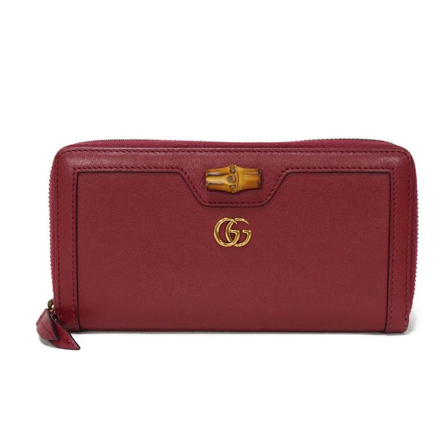 スムースレザーにグッチのGGメタルとバンブーがあしらわれた「ダイアナ ジップアラウンドウォレット」ラウンドファスナー式長財布です。 |