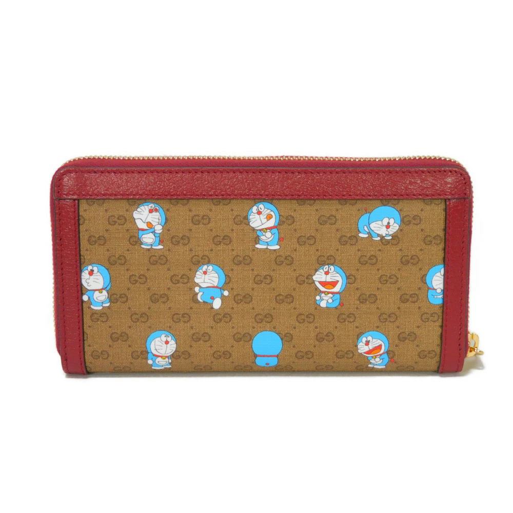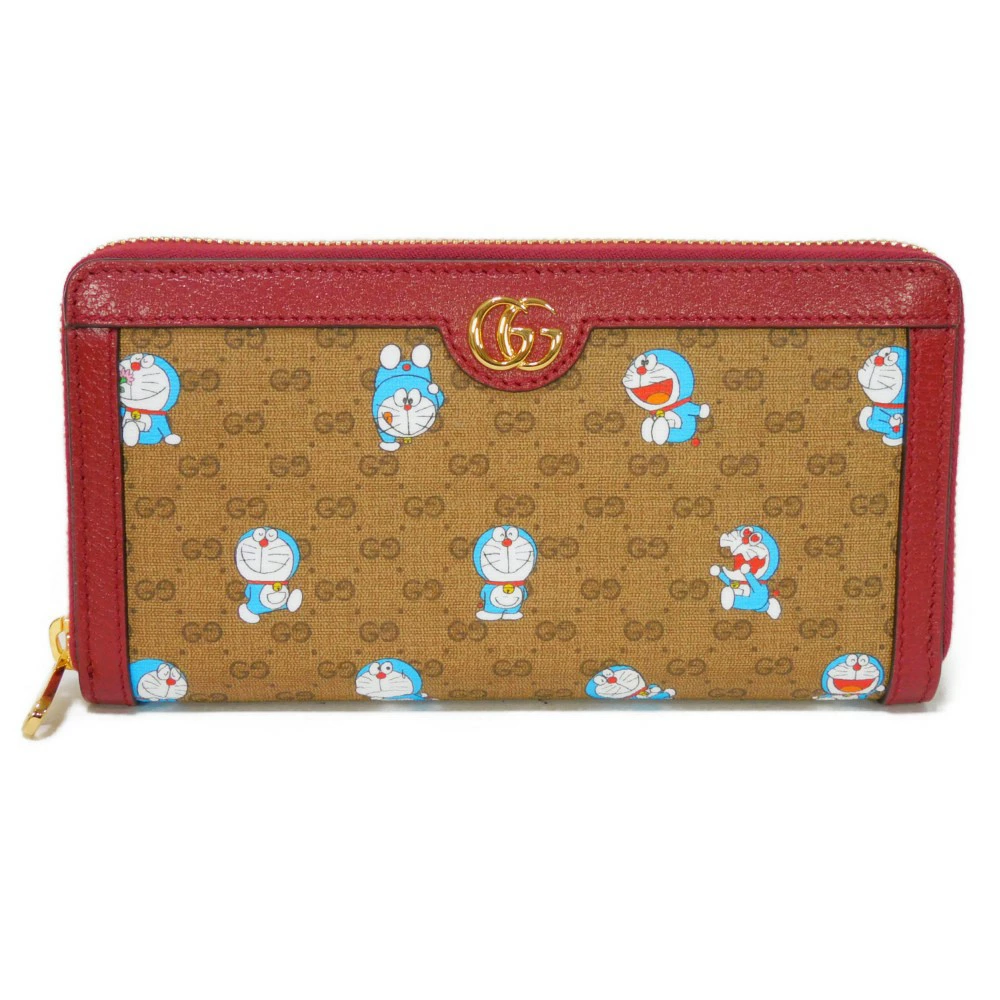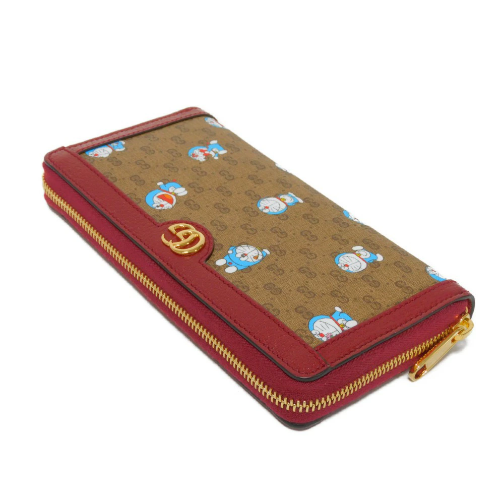 Pre-owned Gucci Doraemon Zip-Around Wallet, Brown and Red, Round Zipper, Mini GG Supreme 647787 2TUBG 8580, Men's and Women's Long Wallet, Wallet with Bill Compartment, Elegant, High-Quality, Sophisticated, Brand Name.