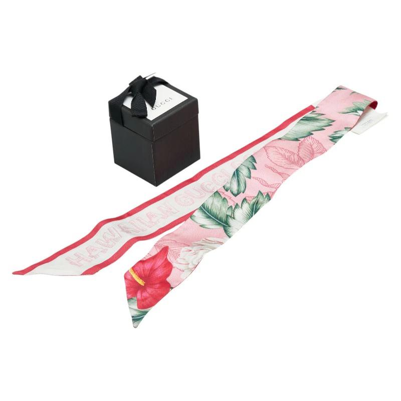 Pre-owned Gucci Flower Neck Bow Scarf 631432 in Pink Multicolor Silk for Women.