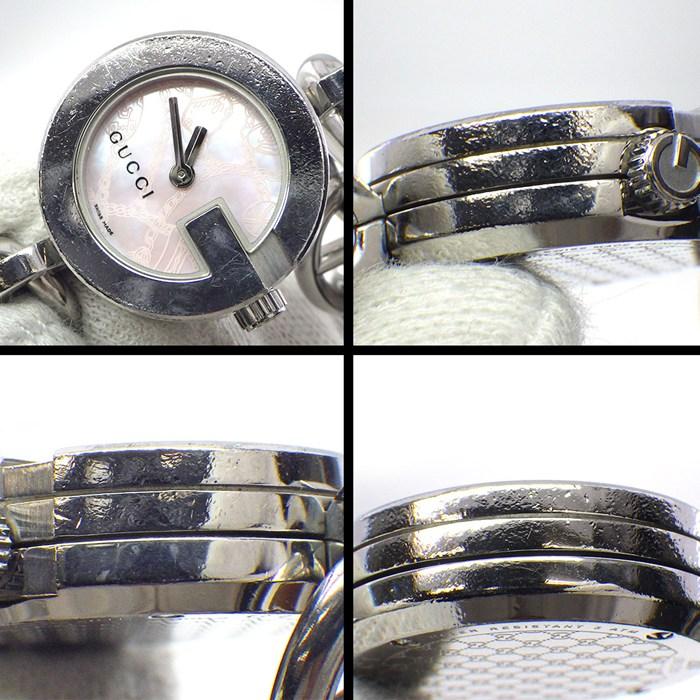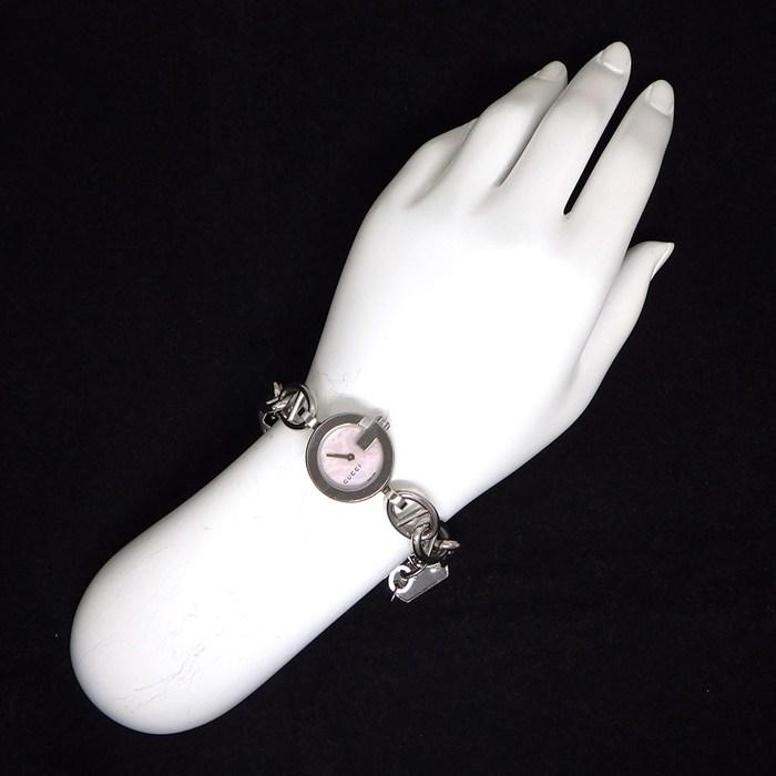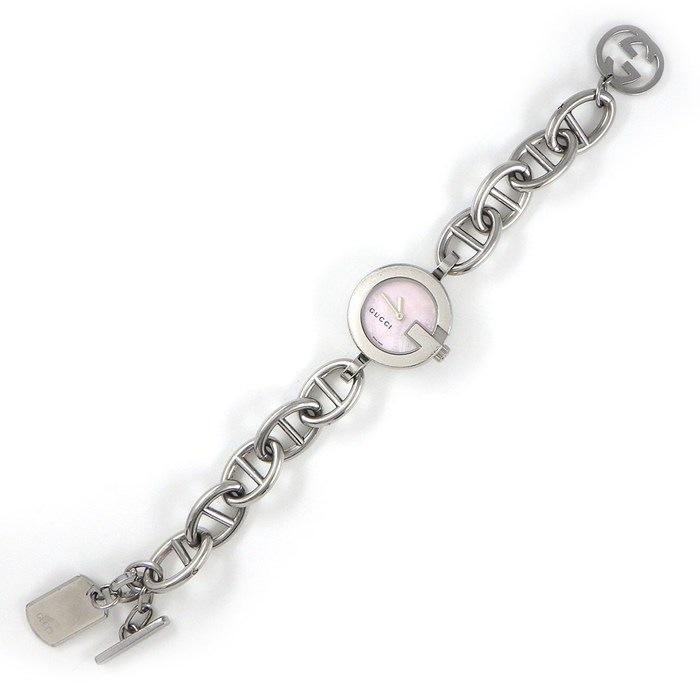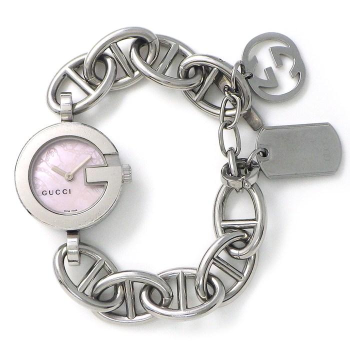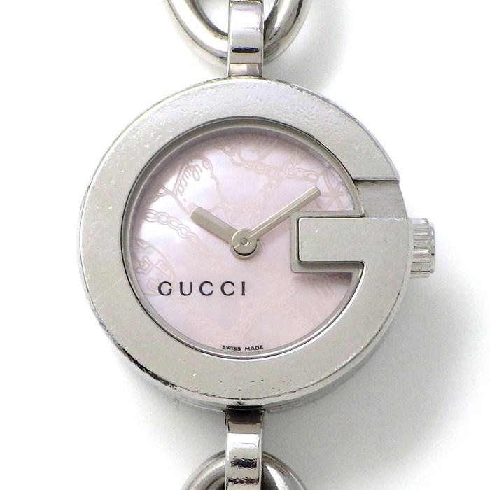 ■商品名GUCCI 腕時計 Gチャーム 107 ピンクシェル文字盤 チェーン SS クオーツアナログ 【中古】