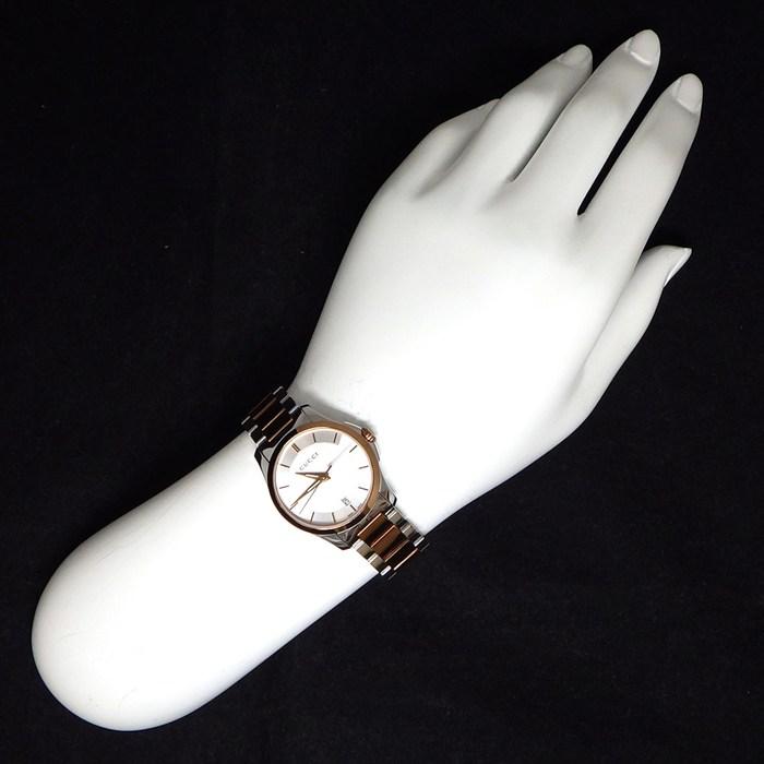 GUCCI 腕時計 Gタイムレス 126.5 シルバー文字盤 デイト ピンクGP SS クオーツアナログ 【中古】