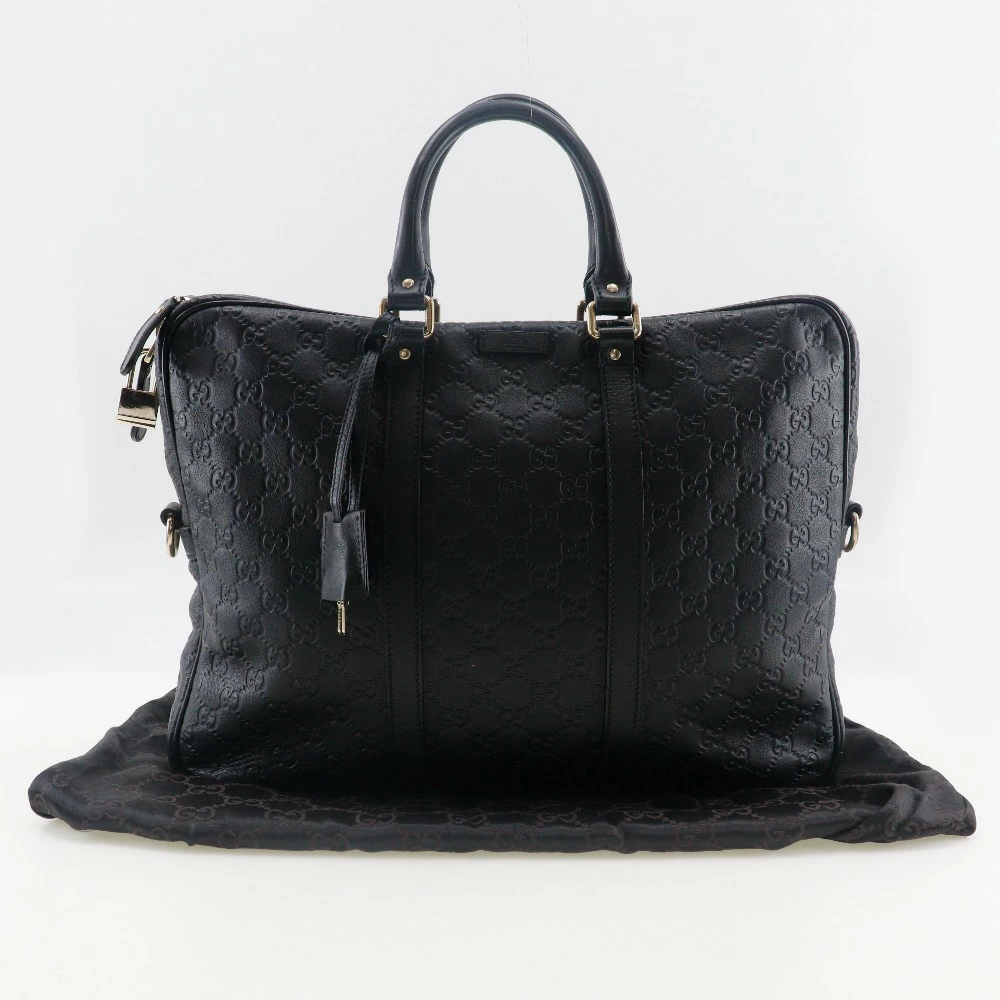 Pre-owned Gucci GG Business Briefcase 201480, Shimmer Leather, Made in Italy, Black, A4 Size, Double Zipper, GG, Men's