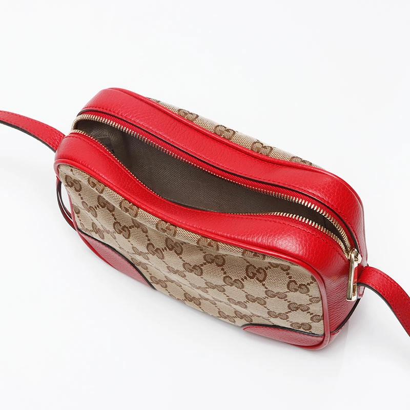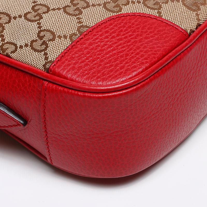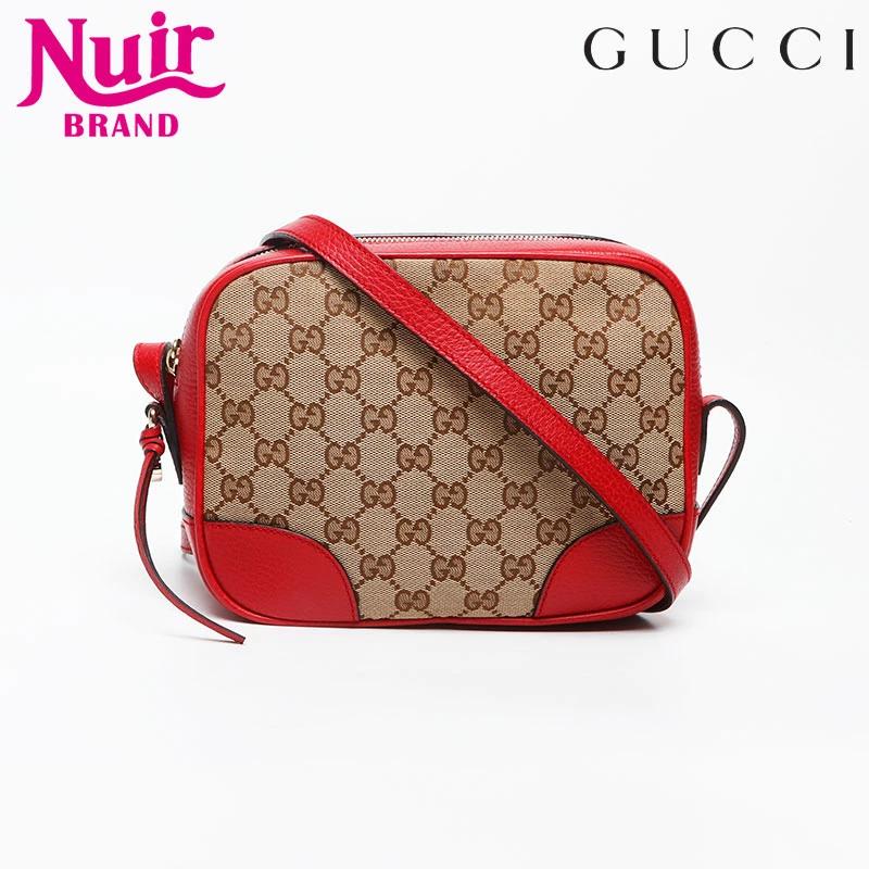 グッチ GUCCI GGキャンバス レッド レザー ショルダーバッグ ベージュ WS13184 【中古】