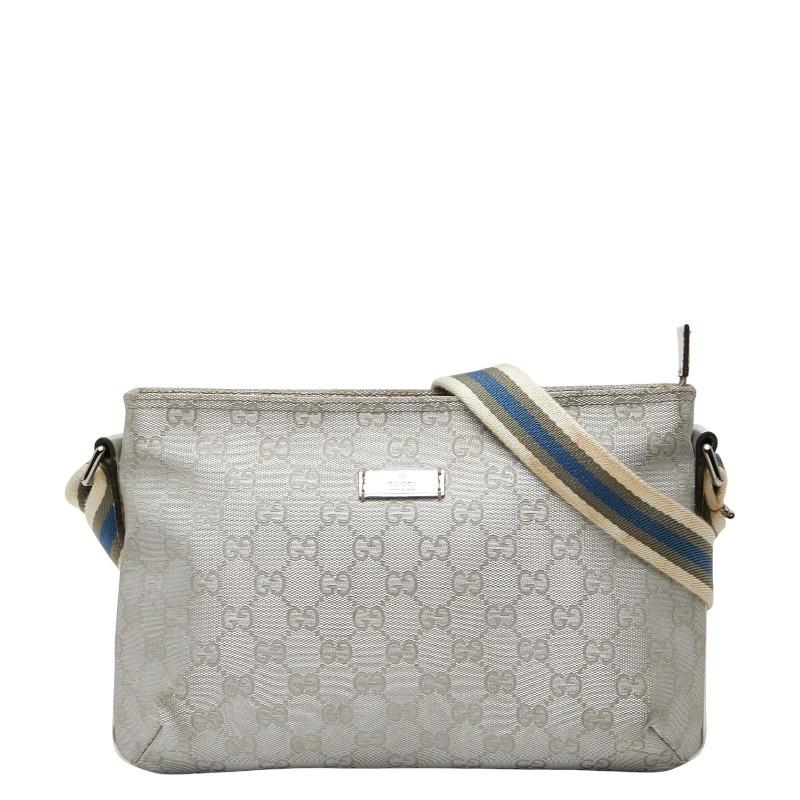 Pre-owned Gucci GG Canvas Sherry Line Crossbody Shoulder Bag 189749 in Silver Canvas and Leather. Women's.
