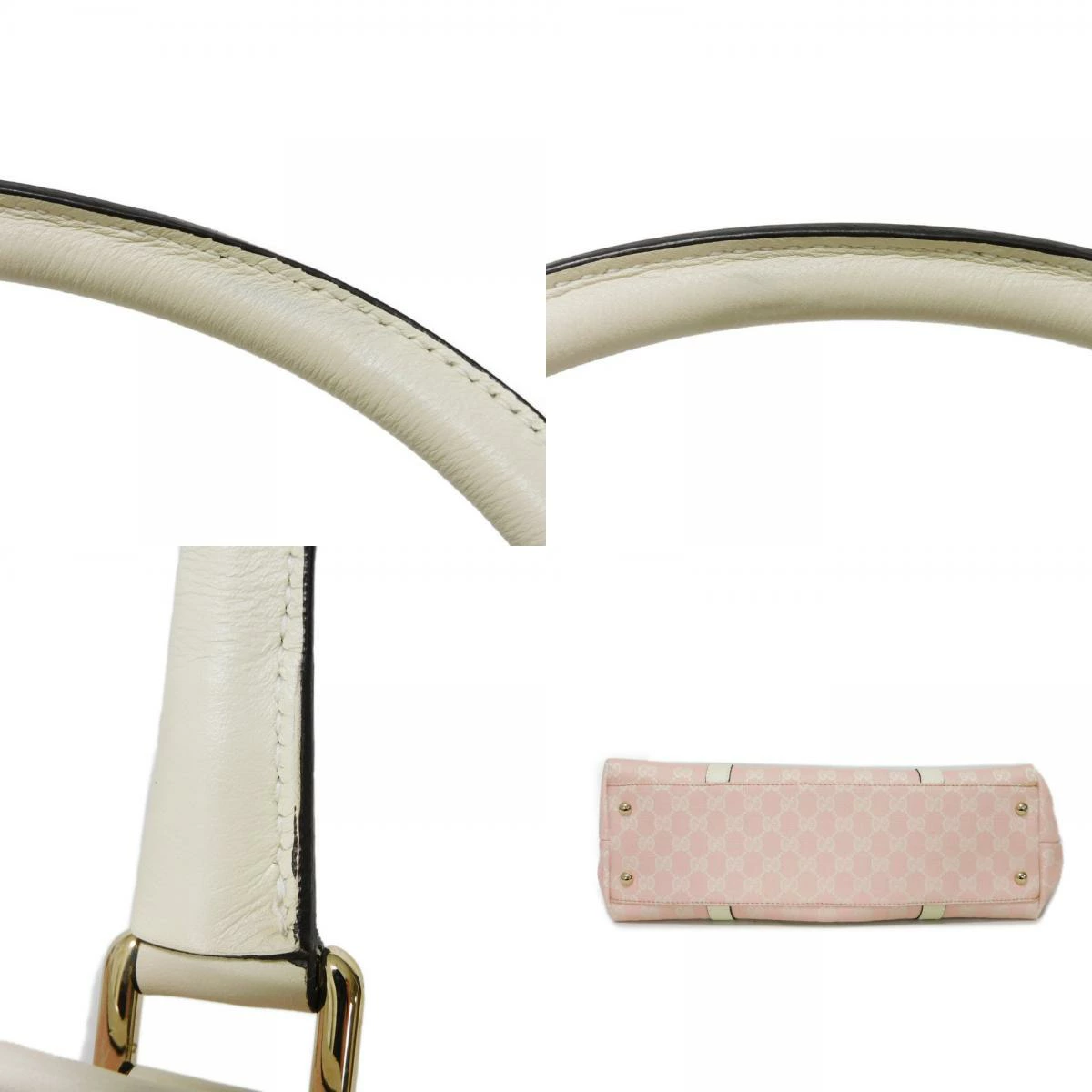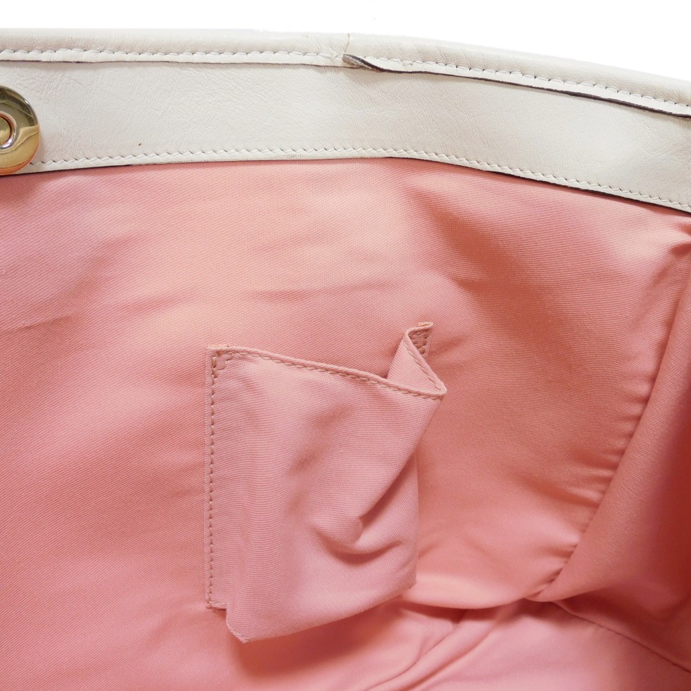 ボンド染み(製造過程によるもの)がございます。 金具部分:小キズ [外側] ハンドル:薄汚れ、シワ [内側] 内側:シワ |