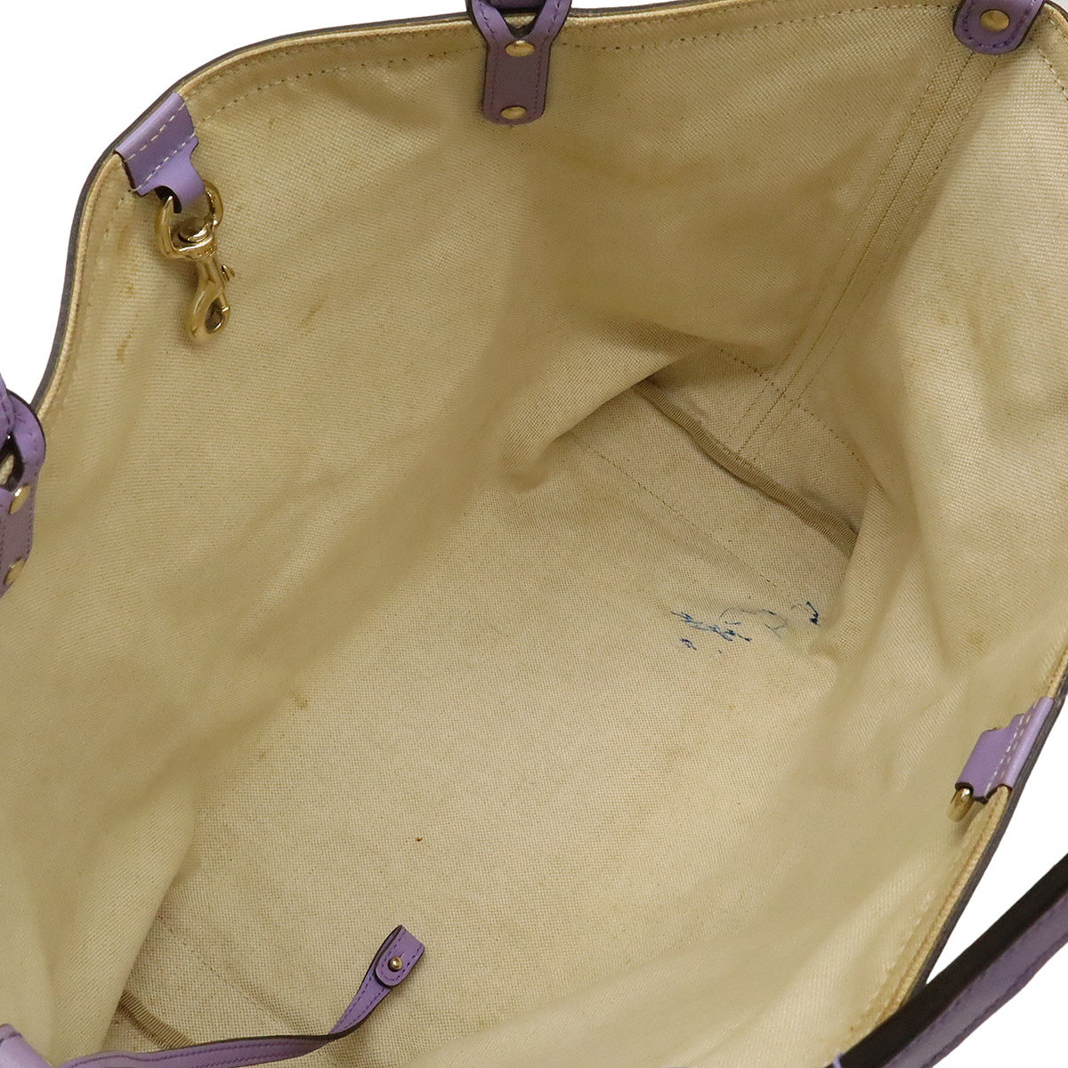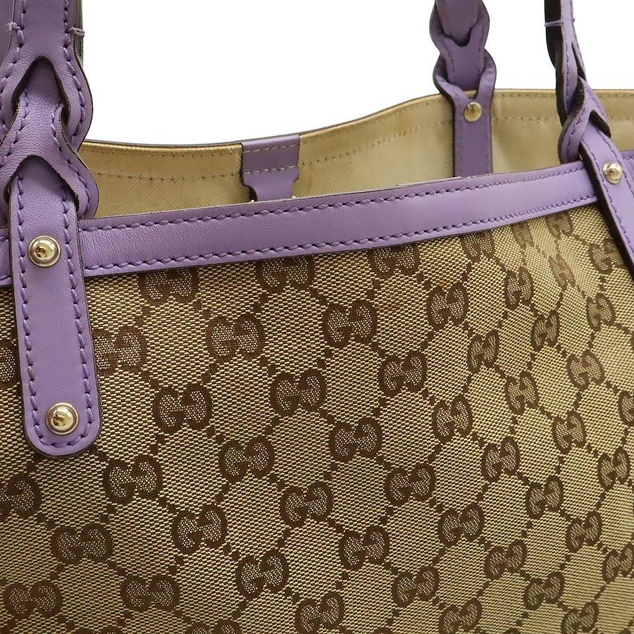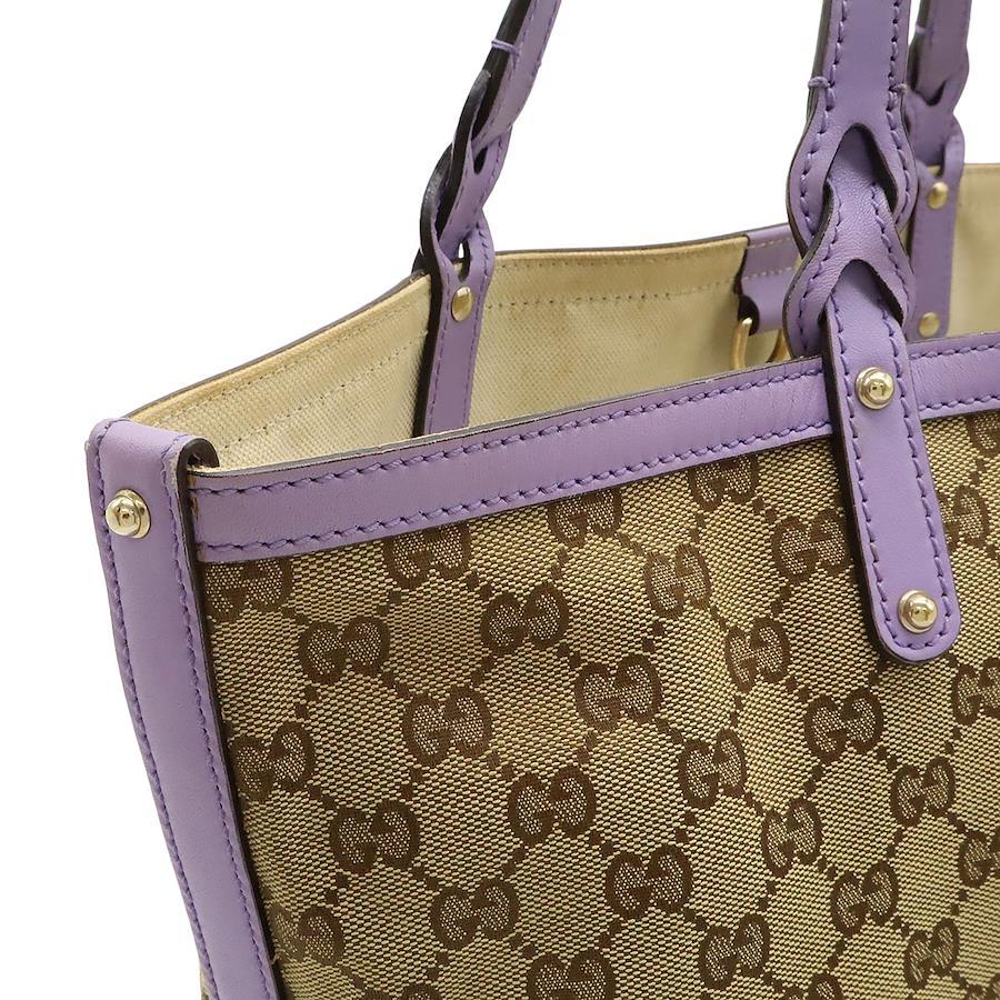 Pre-owned GUCCI GG canvas tote bag, shoulder bag, semi-shoulder bag, leather, khaki beige and purple, with pouch, 247209