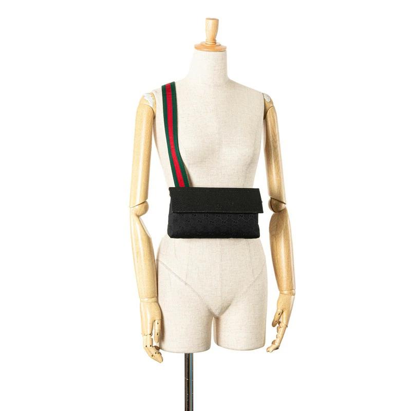 Pre-owned Gucci GG Canvas Waist Bag/Body Bag 180691 Black Canvas and Leather Women's GUCCI