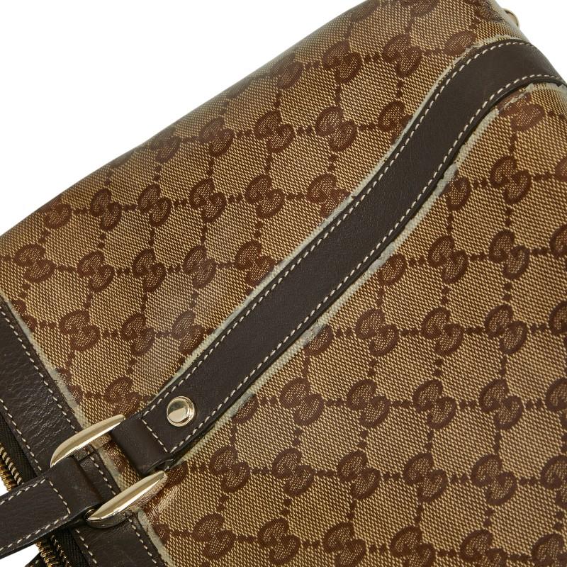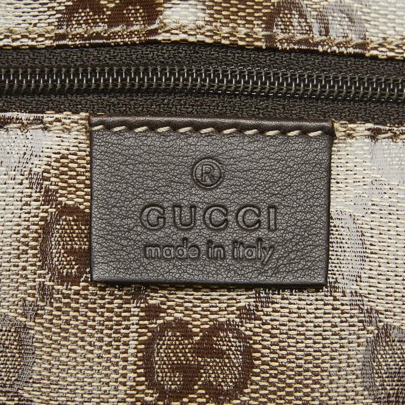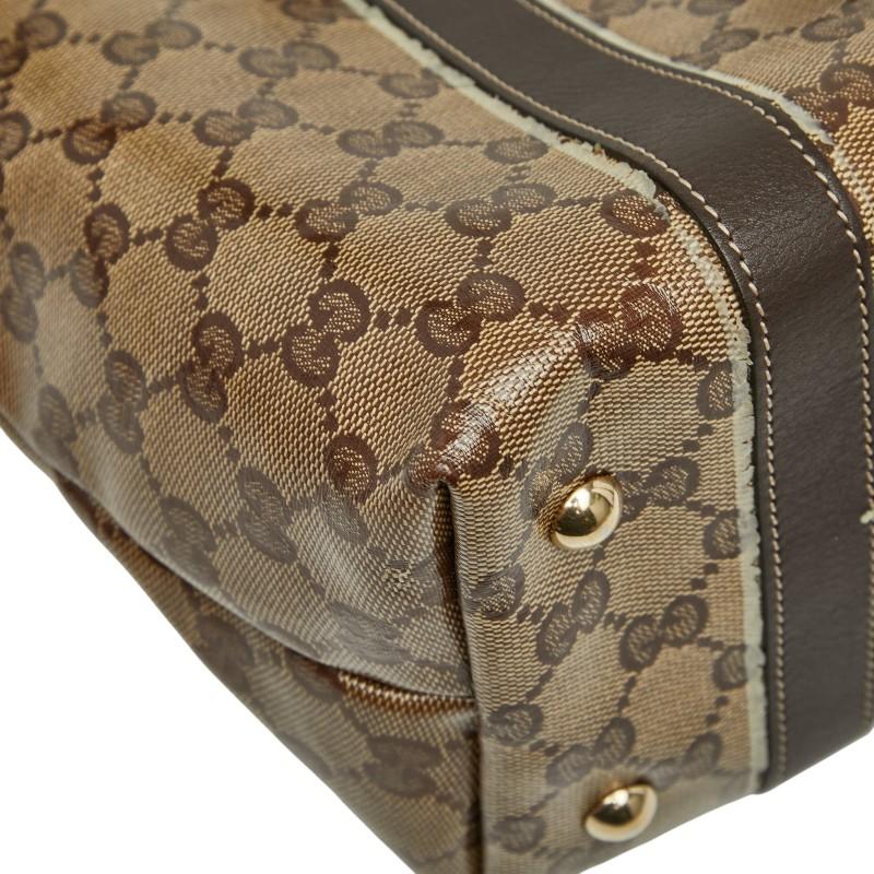 Pre-owned Gucci GG Crystal Abbey Tote Bag 141470 in Beige, Brown PVC, and Leather.