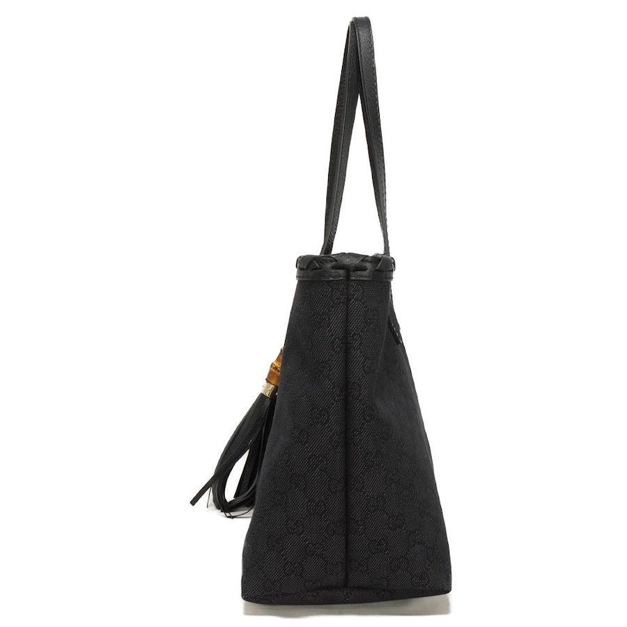 Pre-owned Gucci GG Denim Tote Bag, Fringed Braided Calfskin Shoulder Bag with Tassel Charm, Black (354665), Men's/Women's Bag, Elegant, Luxury, Sophisticated, Brand Name.