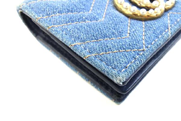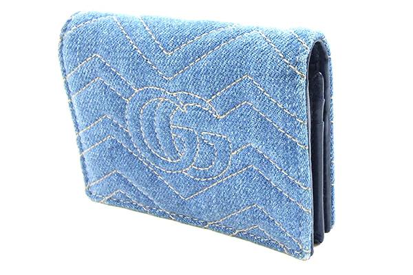 Pre-owned Gucci GG Marmont Bifold Wallet, Blue Denim and Leather, Compact Wallet with Quilted Logo, Women's, 466492