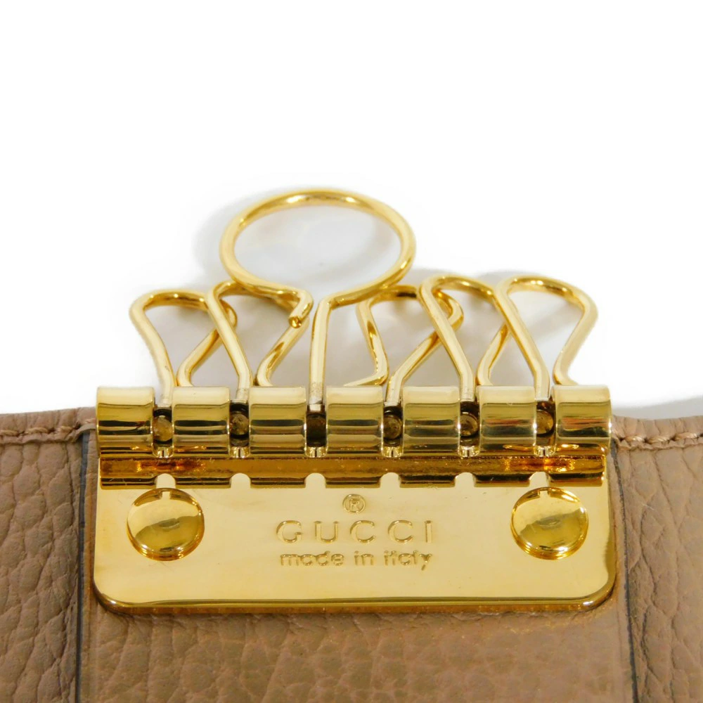 型押しが施された、カーフレザーにグッチのアイコニックなダブルGがあしらわれた「GGマーモント 6連 キーケース」。 |