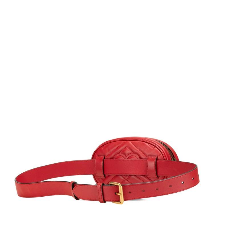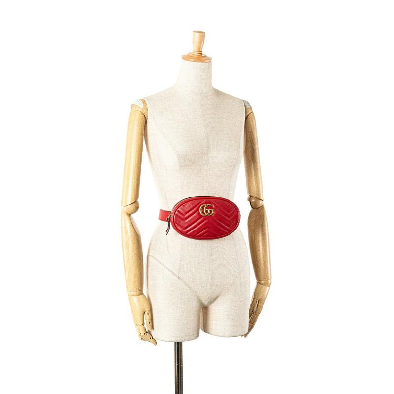 Pre-owned Gucci GG Marmont Waist Bag (476434) in Red Leather.