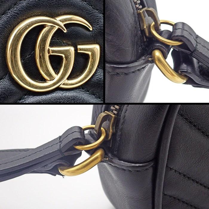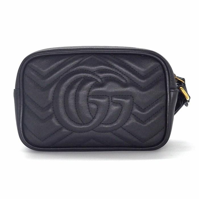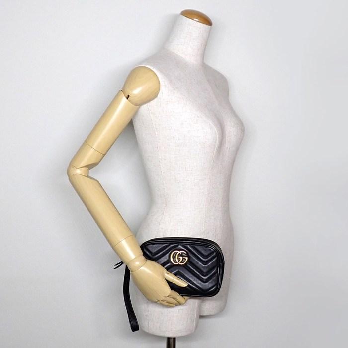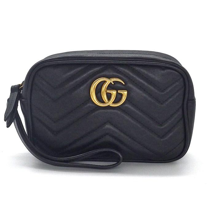 ■商品名GUCCI ポーチ/クラッチバッグ GGマーモント リスト ウォレット 443438 DRW1T 1000 ブラック マトラッセ シェブロン レザー 【中古】