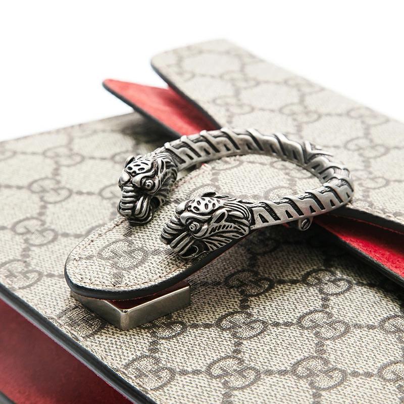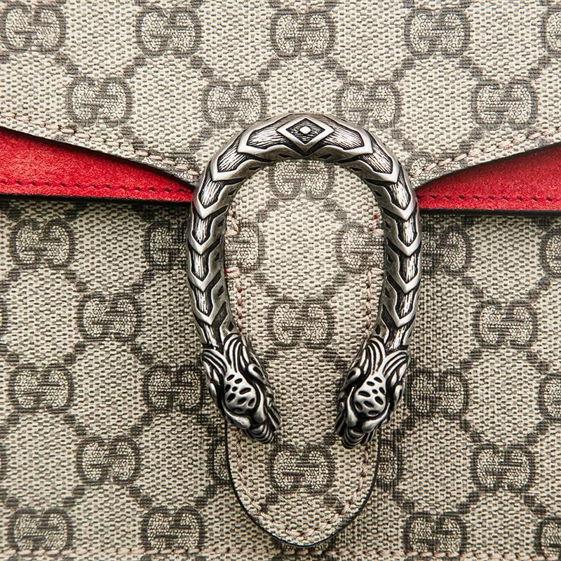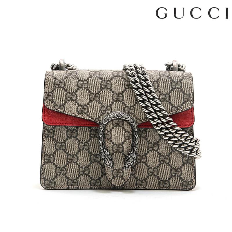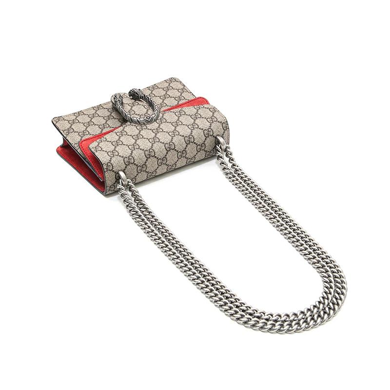 グッチ GUCCI GGスプリーム ディオニュソス チェーン ショルダーバッグ ベージュ×レッド P13048 【中古】