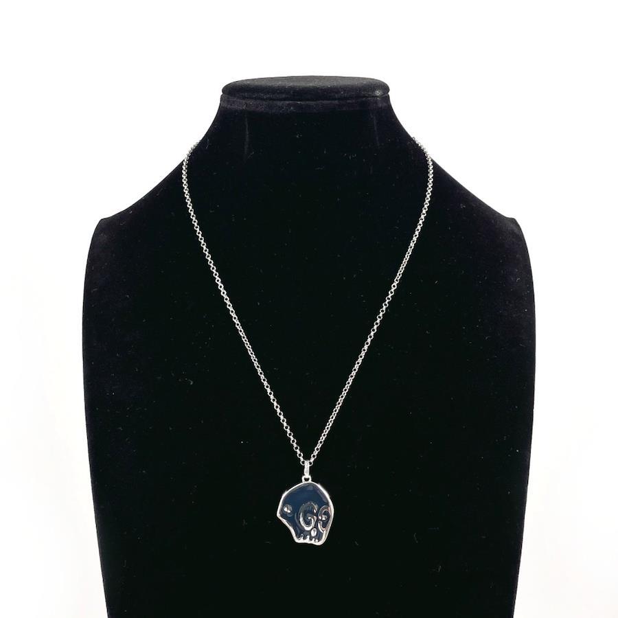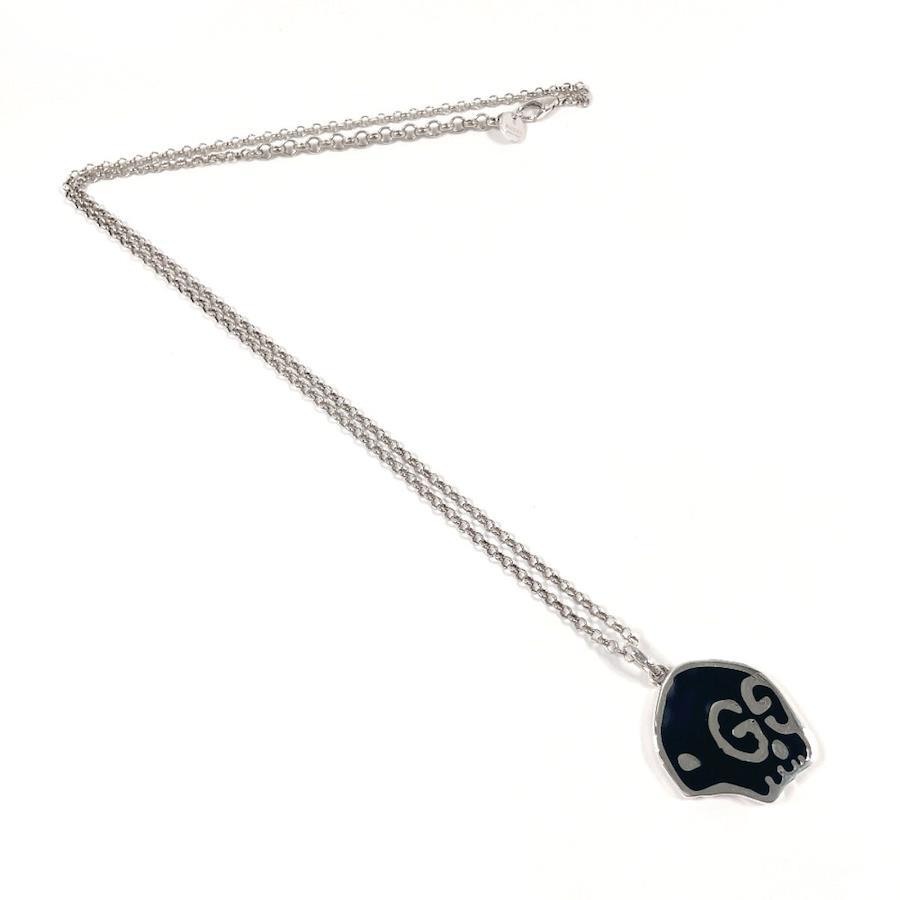 ■商品情報[管理番号]F5048634[ブランド]グッチ(GUCCI)[アイテム]ネックレス[対象]ユニセックス[カラー]シルバーシルバー/ブラック[モデル]ゴースト スカル[重量]17.68g[生産国]イタリア[サイズ]全長:約50.5cmトップW約23.5mm x H約27.4mm[素材]シルバー925[付属品]なし[メンテナンス情報]クリーニング済み,新品仕上げ済み[商品説明]アーティスティックな感性が光る、GUCCIの「ゴースト スカル」ネックレス。存在感抜群のブラックエナメルで表現されたスカルに、象徴的な「GG」ロゴを組み合わせたデザイン。