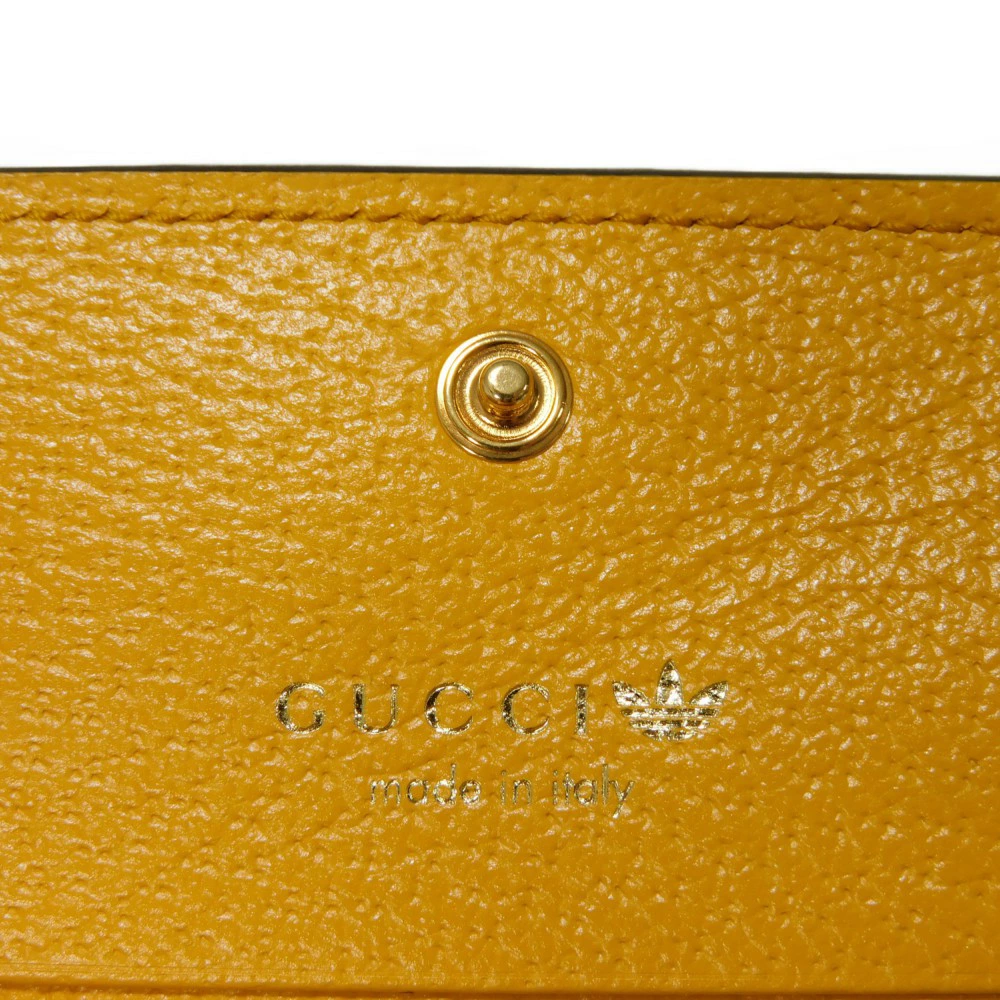 グッチのホースビットとアディダスのトレフォイルロゴのプリントが施されたショルダーストラップ付きの二つ折り財布です。 |