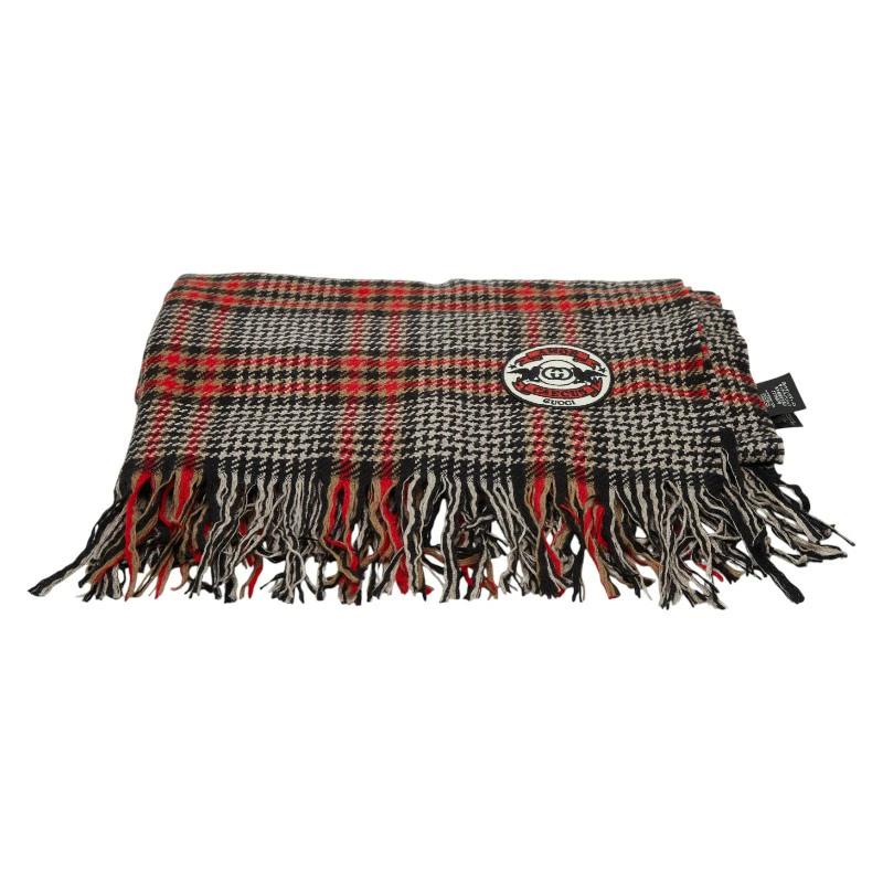 - グッチ マフラー ブラック ブラウン レッド カシミヤ レディース GUCCI 【中古】
