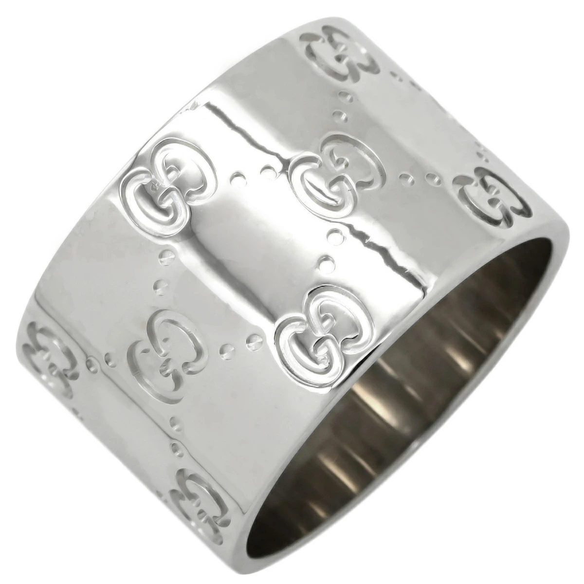 グッチ GUCCI リング 指輪 アイコン ワイドリング アイコン K18WG ホワイトゴールド Au750 750 18K 20号 #20 レディース定番 人気 美品 【中古】