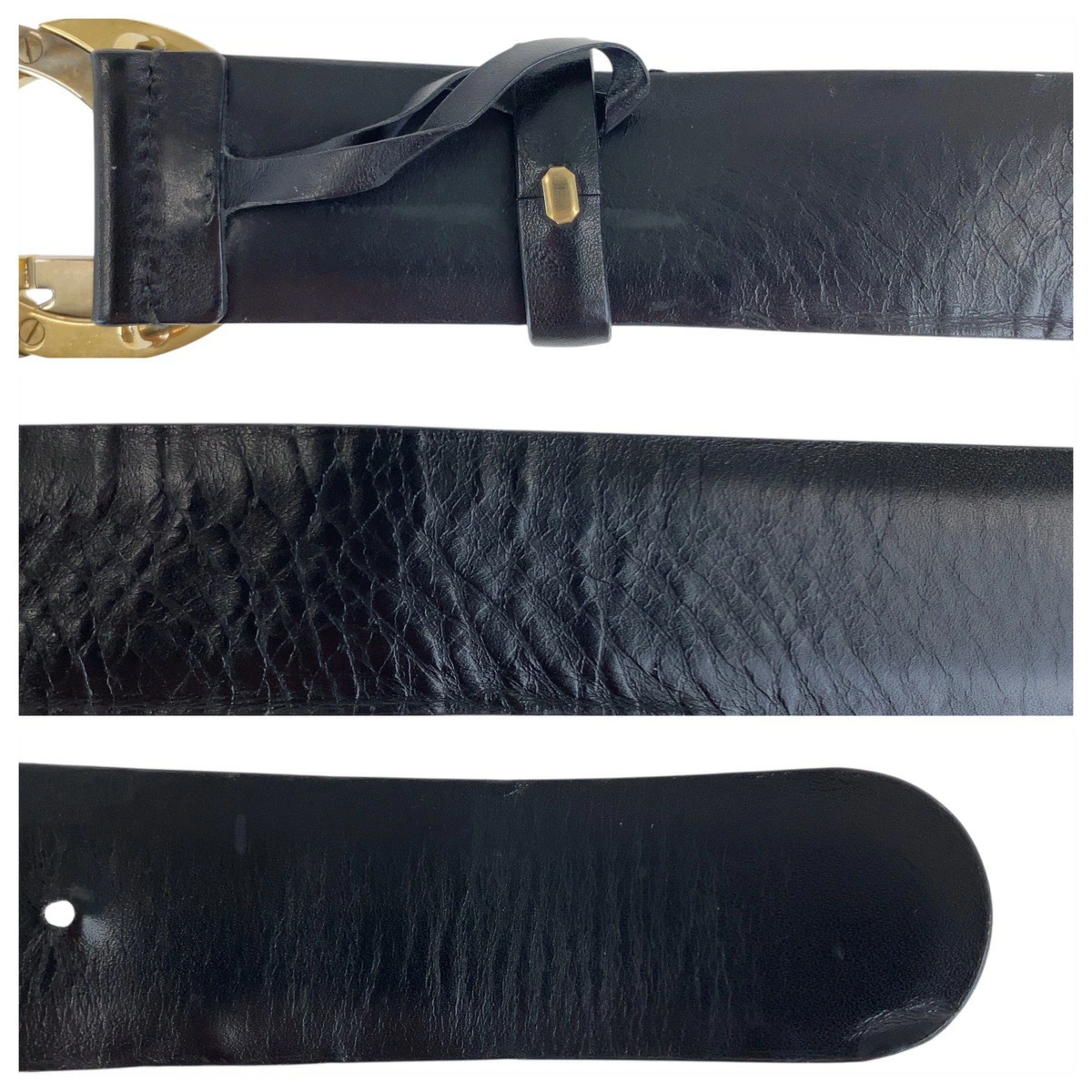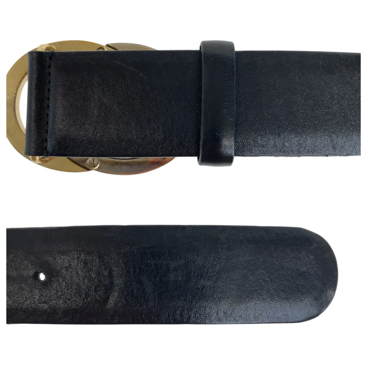 | サイズ | ベルト全長(バックル含む):約105.5cm ベルト幅:約4cm ウエスト:約87.5cm ~ 92.5cm 穴の数:3 バックル縦:約5.5cm バックル横:約8cm 表記サイズ:36 |