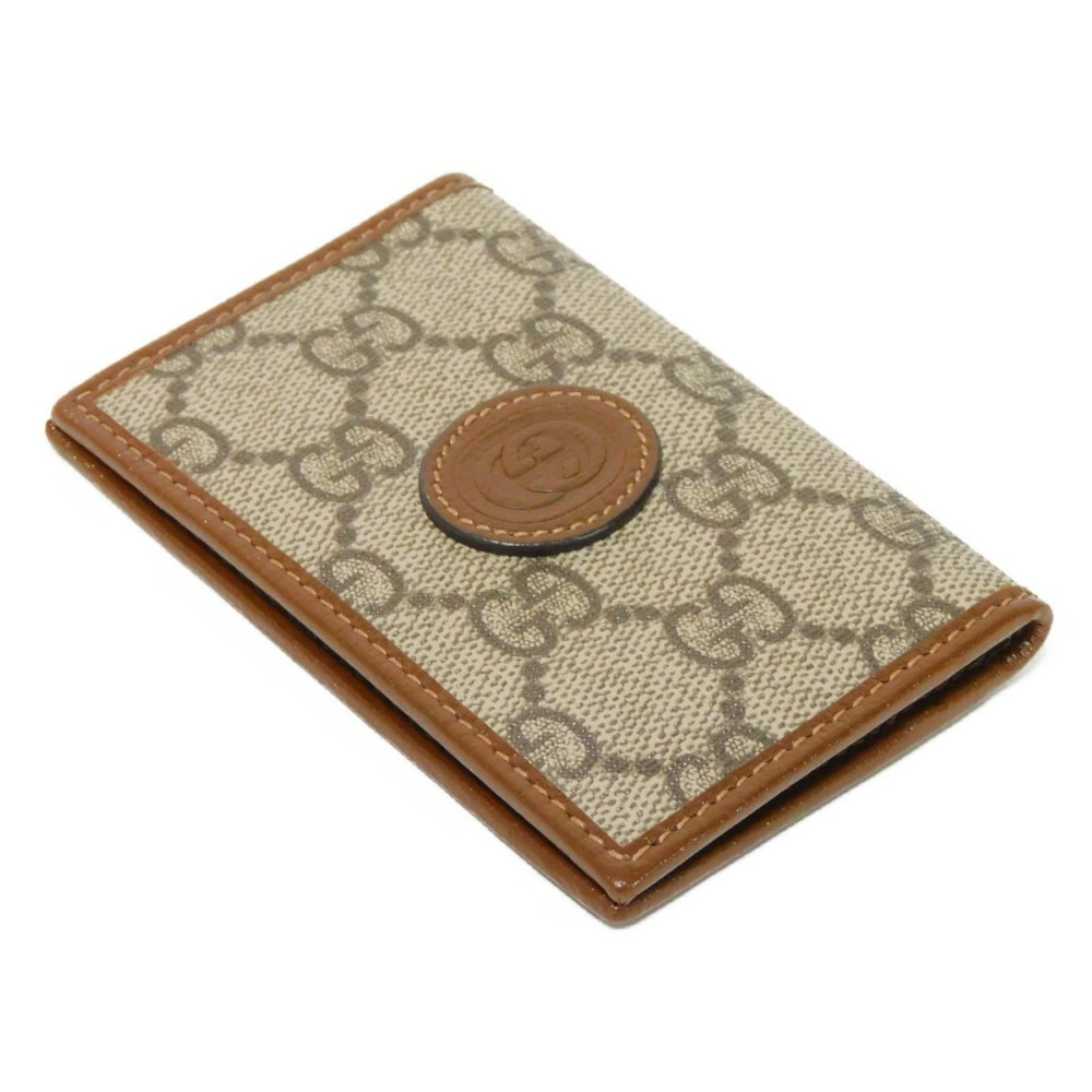 GGスプリームキャンバスにグッチのインターロッキングGのレザーパッチがあしらわれた「カードホルダー」二つ折りカードケースです。 |