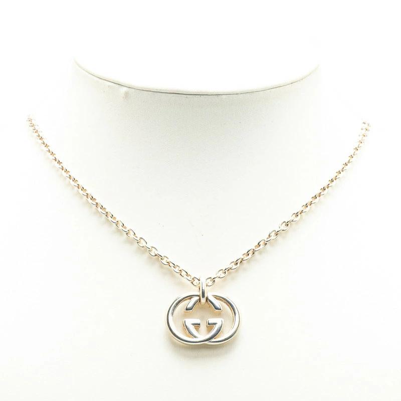 Pre-owned Gucci Interlocking G Chain Pendant Necklace in 925 Sterling Silver for Women.