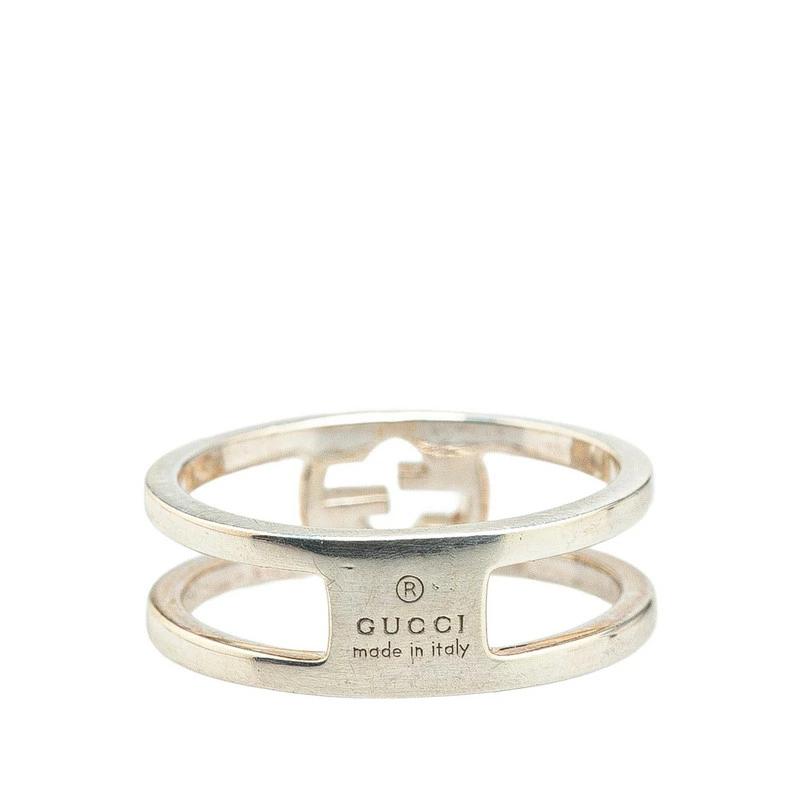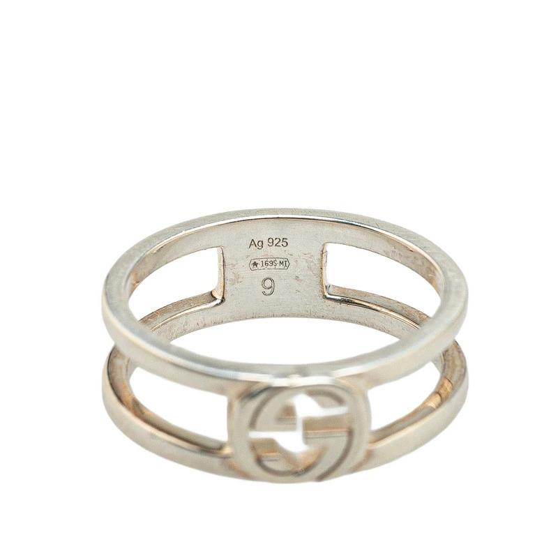 Pre-owned Gucci Interlocking G Open Band Ring #9, SV925 Silver, Women's