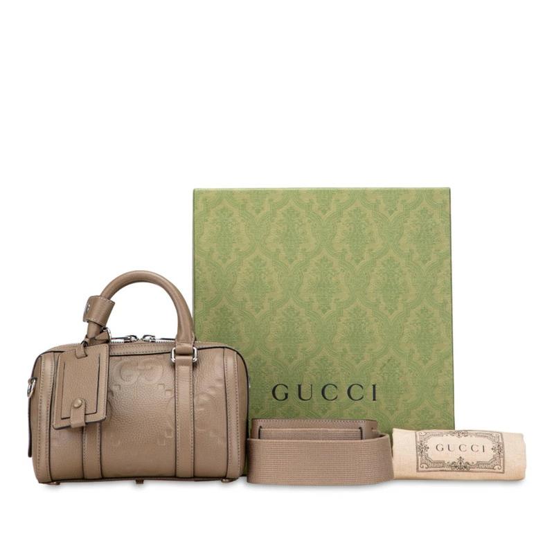 Pre-owned Gucci Jumbo GG Mini Duffle Handbag/Shoulder Bag, 2-Way, 725292, Greige Leather, Women's