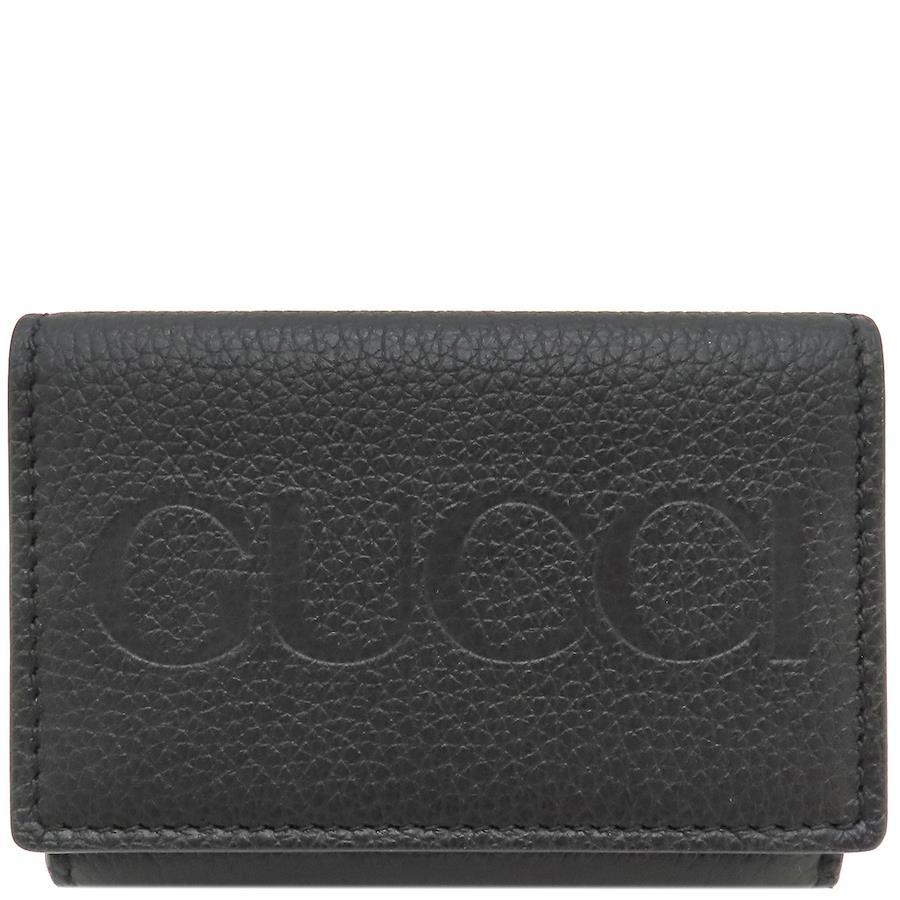 Pre-owned Gucci Logo Mini Tri-fold Wallet, Black Leather with Gold Hardware, Compact, 736151