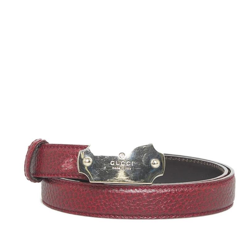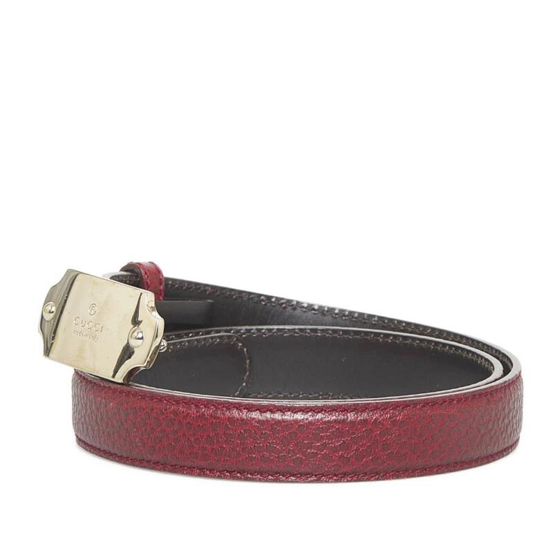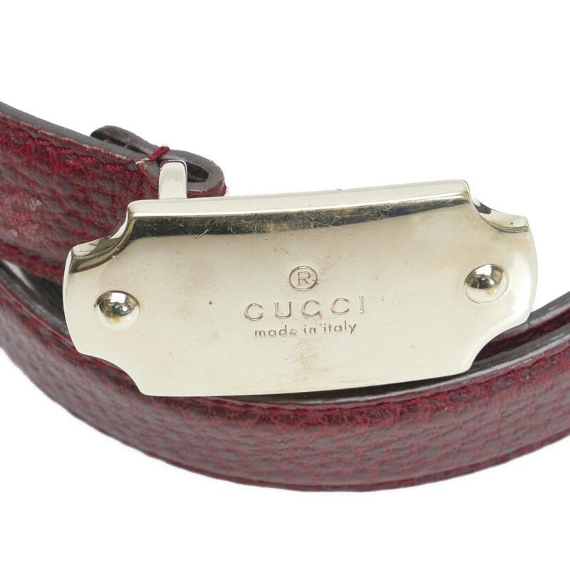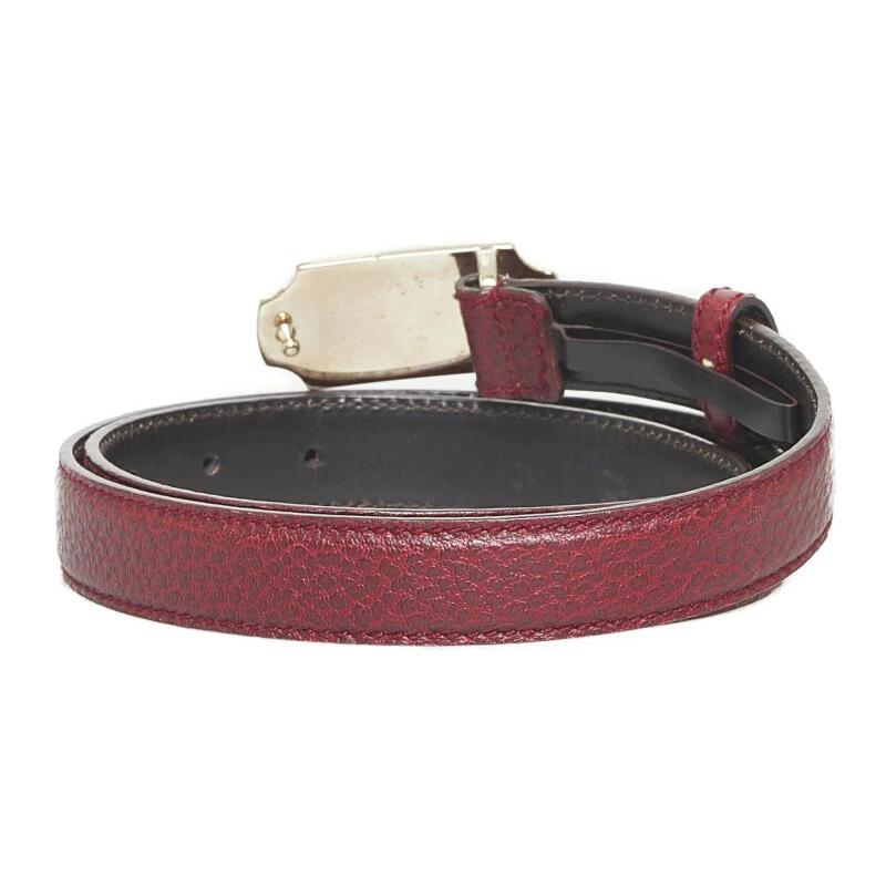 Pre-owned Gucci Logo Plate 85/35 Belt 146439, Gold and Wine Red Leather, Plated, Women's
