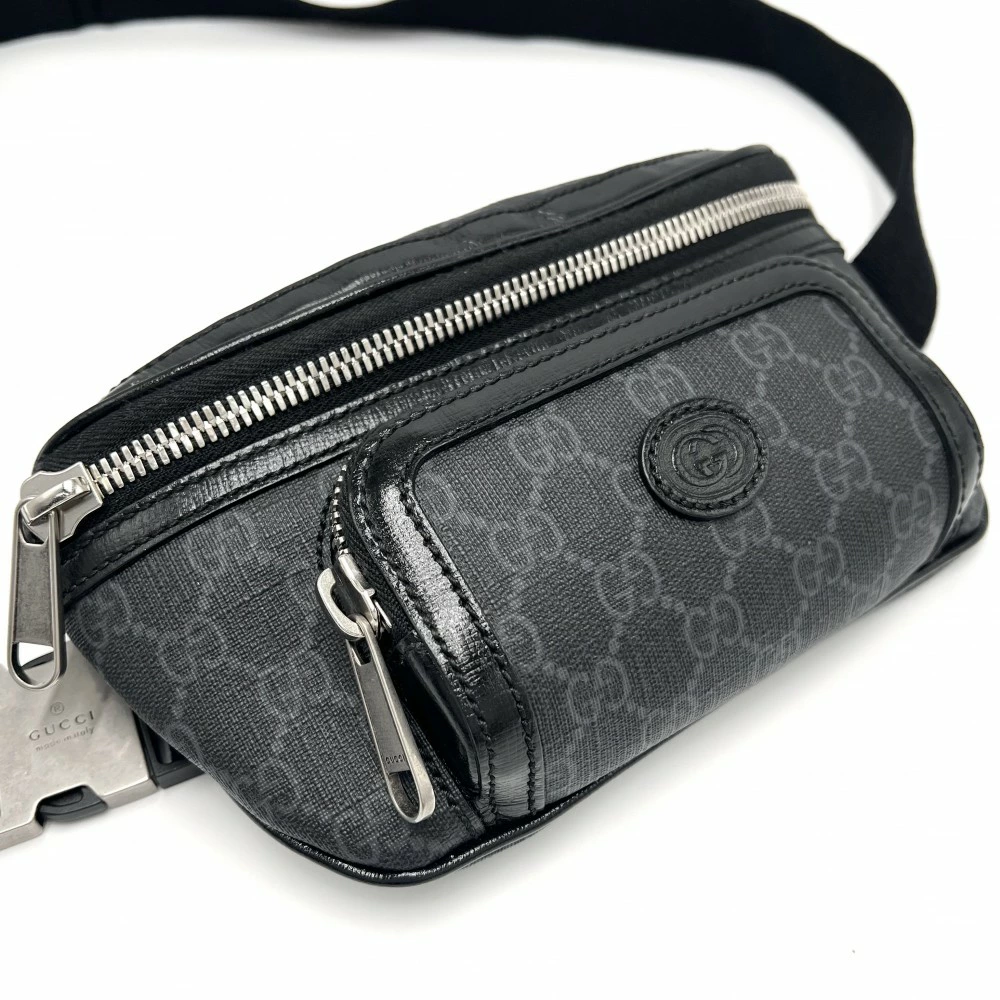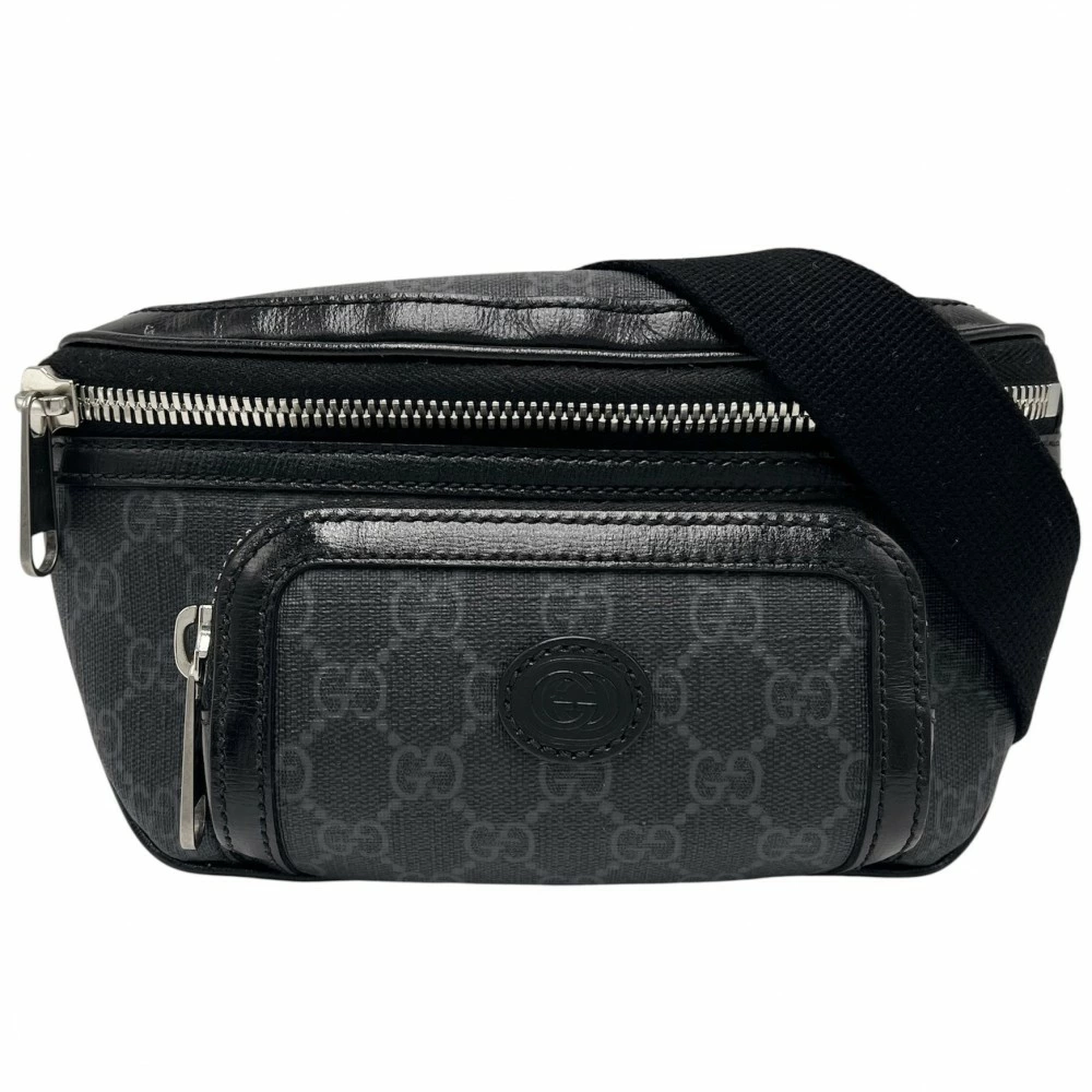 Pre-owned Gucci Men's Interlocking G Belt Bag/Waist Pouch (682933) in Black GG Supreme Canvas with Silver Hardware