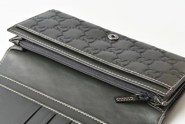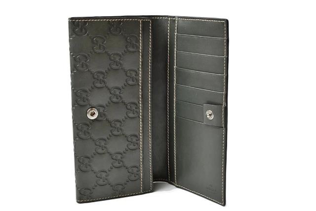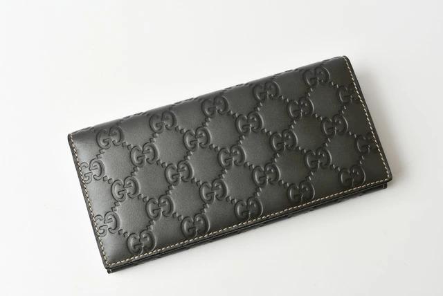 グッチより、高級感があり人気の高い、グッチシマラインです。シックなカラーで、大人の雰囲気に。ボトムの後ろポケットに、すっぽり入るメンズにもオススメのスタイリッシュなお財布。ポケットがたくさんあり、中身の整頓がしやすいです。