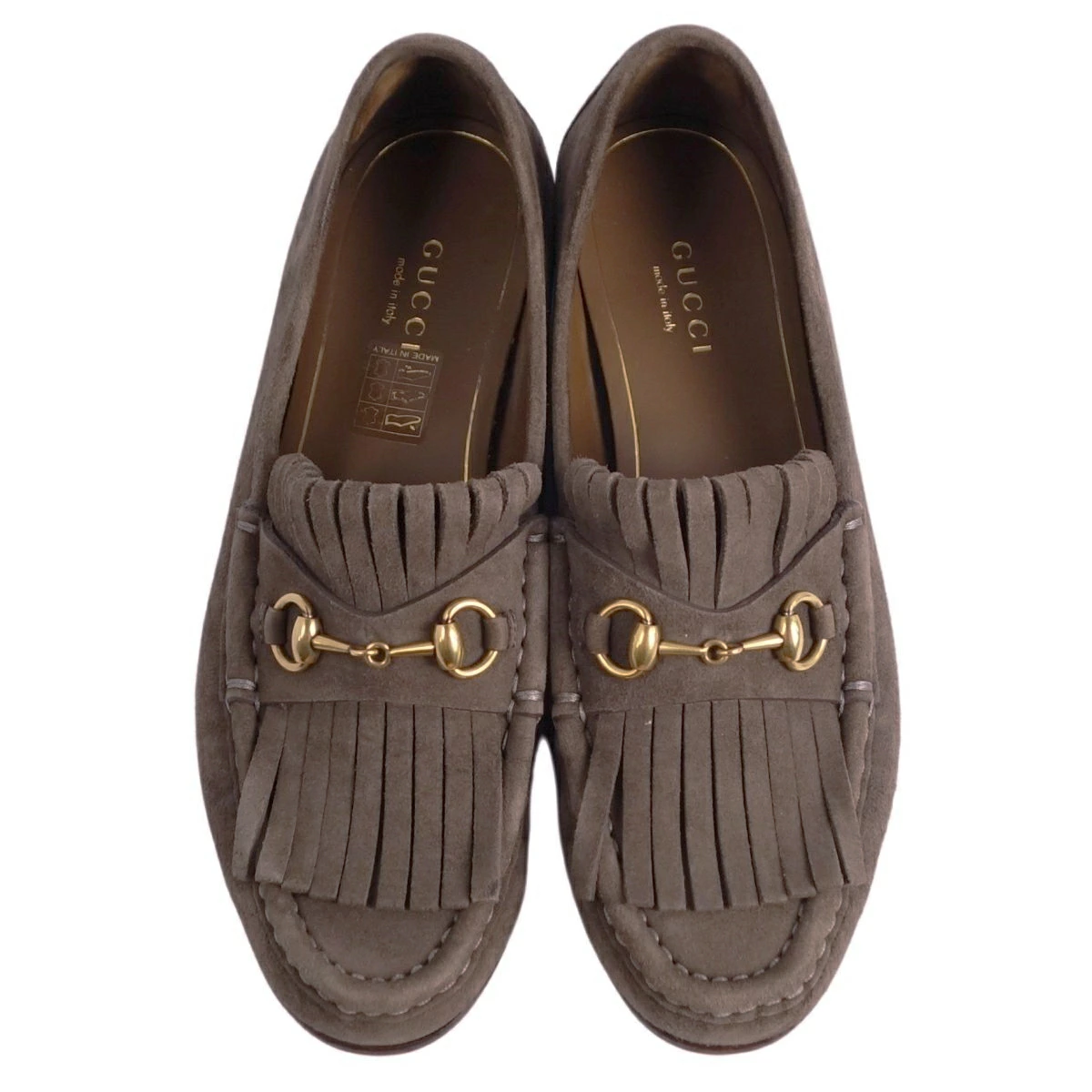 ■商品名グッチ GUCCI ローファー モカシン キルト ホースビット スウェードレザー 革靴 メンズ イタリア製 ブラウン サイズ35(22cm相当)■状態説明・上質なスウェードレザーを贅沢に使用した、GUCCIのローファーです♪・ブラウンのカラーリングにアイコニックなホースビットデザインが目を引く一品です◎・イタリア製(351305)・USEDですが気になるようなキズや汚れなどはなく全体的にキレイな状態です!【季節感:オールシーズン】【付属品:保存袋】■素材スウェードレザー■カラーブラウン■表記サイズ35(22cm相当)■実寸サイズアウトソール:約24cm幅:約8cm■状態ランクAB 使用感があるが、傷や汚れの気にならない状態■店舗管理番号ce08mb-rm10e32907womens_brown