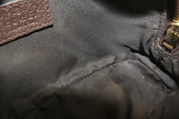 | 状態 | 外側:若干膨らみ・型崩れ多少あり。レザー部分所々スレあり。ファスナー生地に薄汚れ、毛羽立ちあり。 内側:スレ、薄汚れあり。 金具:小キズ、スレ、クスミあり。ファスナー金具に若干色落ちあり。 |