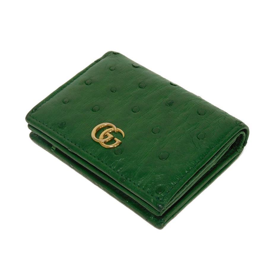 | 水玉模様のようなクイルマークが特徴的なオーストリッチレザーを使用した「ダブルG エキゾチック コンパクト ウォレット」スナップ式二つ折り財布です。 |