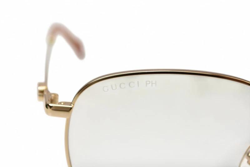 商品説明 | サイズ:【60□15 145】、約:幅14.5×縦5.4cm(フレームを含む最大部分) フレームカラー:ゴールド/ブラウン、レンズカラー:クリア GUCCI(グッチ)のサングラス「GG1419SK」紫外線の量に応じてレンズの色が変化する調光レンズを採用し、屋内外をシームレスに楽しめるアイウェアです。レンズにハート、星、グッチロゴが浮き上がります。ゴールドフレームとブラウンレンズの組み合わせは、ラグジュアリーでありながら柔らかい印象を与え、幅広いスタイルにマッチ。軽量かつフィット感のあるデザインで、長時間の使用でも快適です。調光機能により、日常使いからドライブ・旅行・アウトドアまで幅広く活躍。機能性とデザイン性を兼ね備えた、グッチならではの高級感あふれるアイテムです。 |