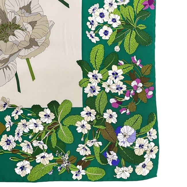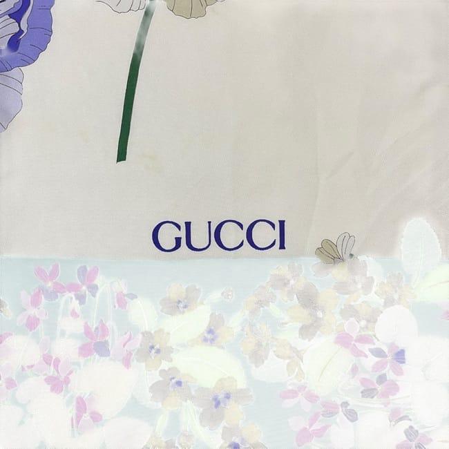 グッチ スカーフ ec-23838 グリーン ホワイト マルチカラー 大判 クリーニング済み 美品 シルク 100% 中古 GUCCI アパレル 花 花柄 ガーデン レディース ヴィンテージ 女性 定番 人気 コレクション インテリア 緑 白 ブランド 本物 鑑定済み