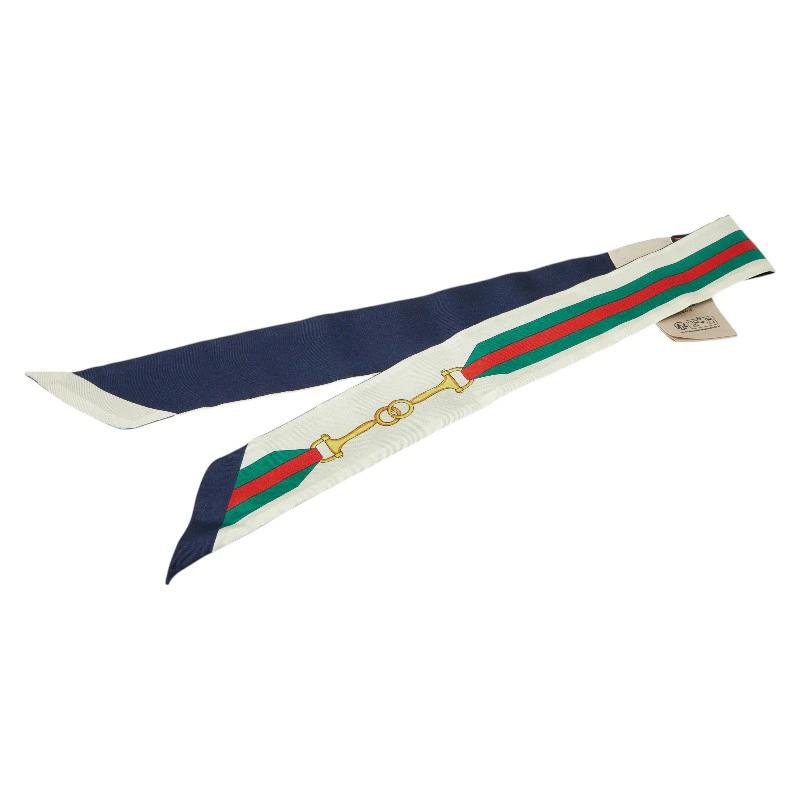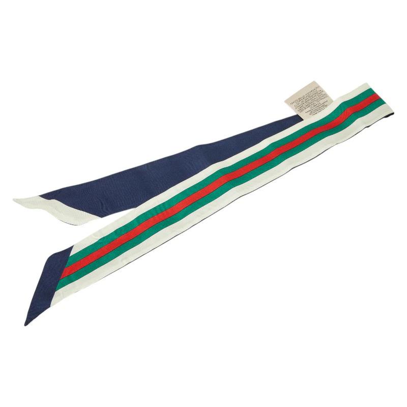- グッチ シェリーライン ネックボウ バンドー スカーフ マルチカラー ネイビー シルク レディース GUCCI 【中古】