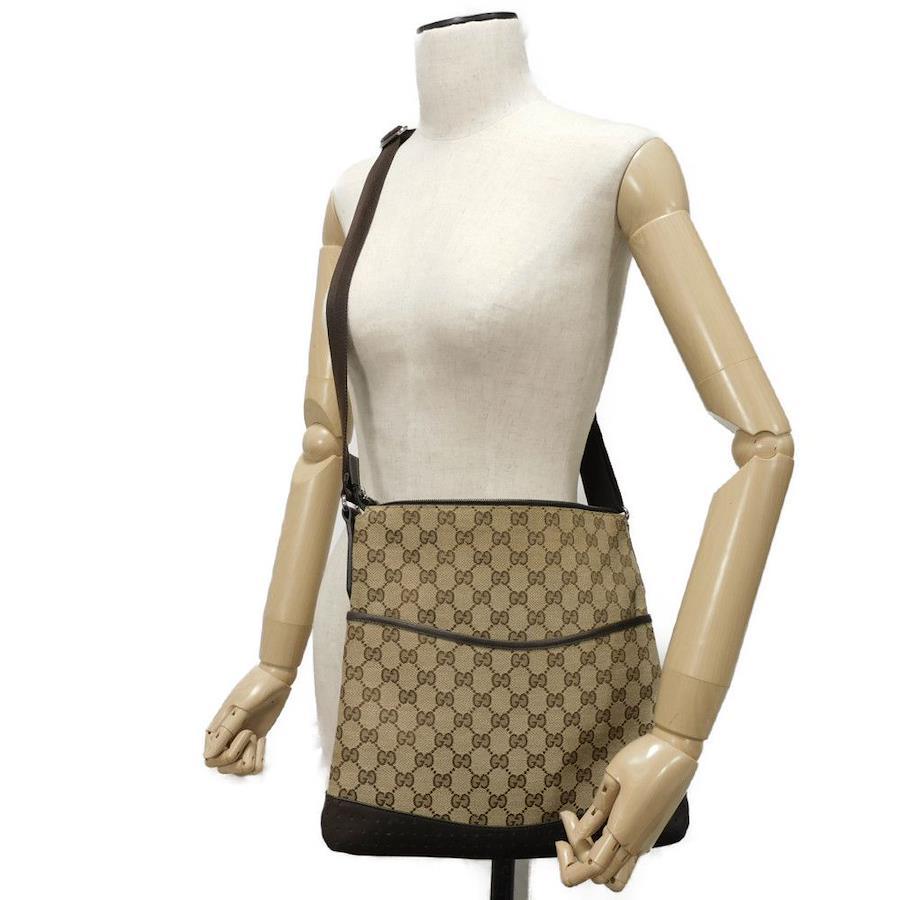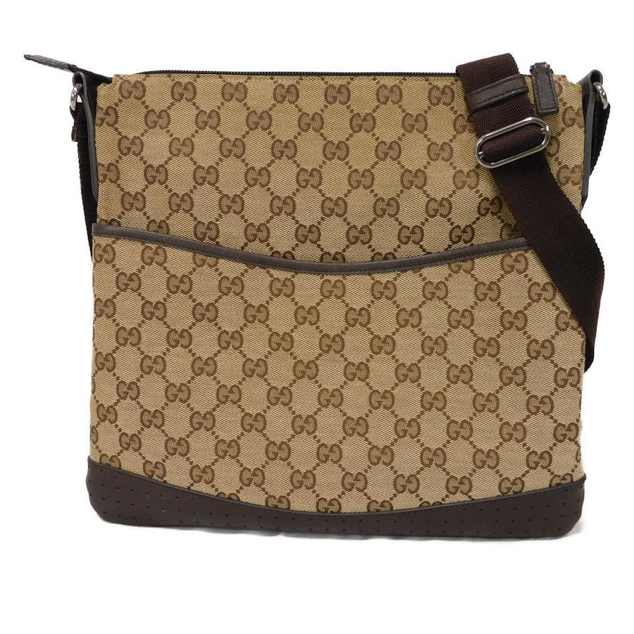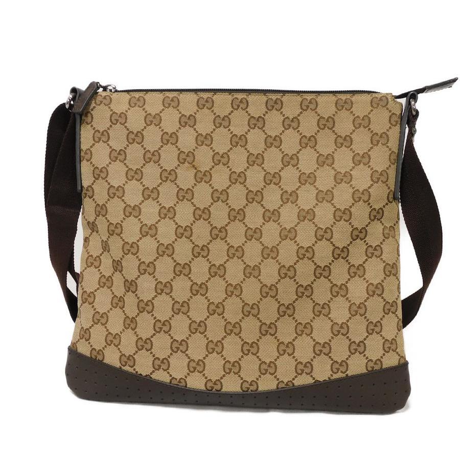 | GGパターンのキャンバスにグッチのロゴがエンボス加工された、スムースレザーを組み合わせた「パンチング レザー メッセンジャーバッグ」ショルダーバッグです。 |