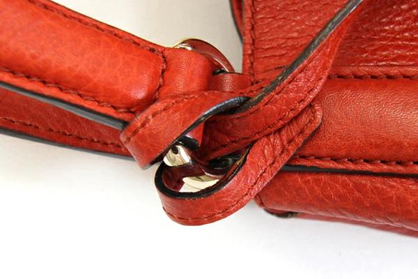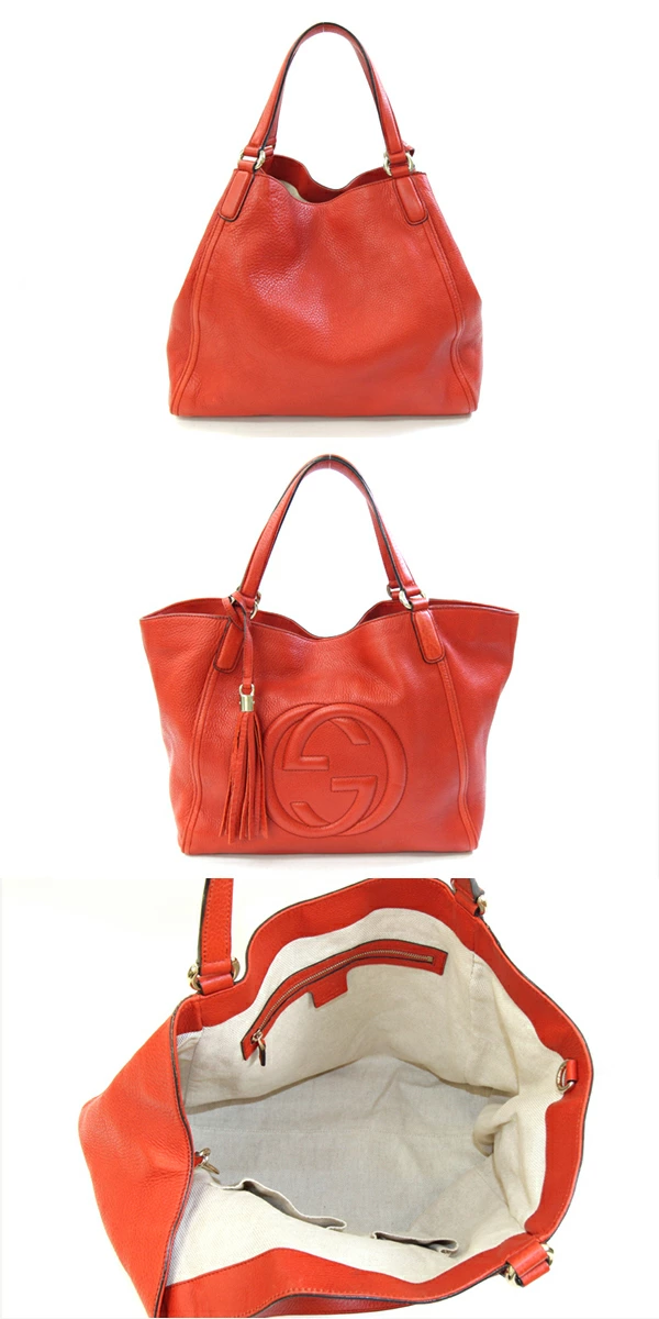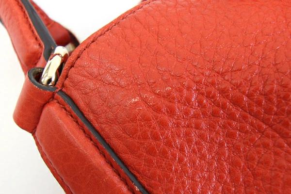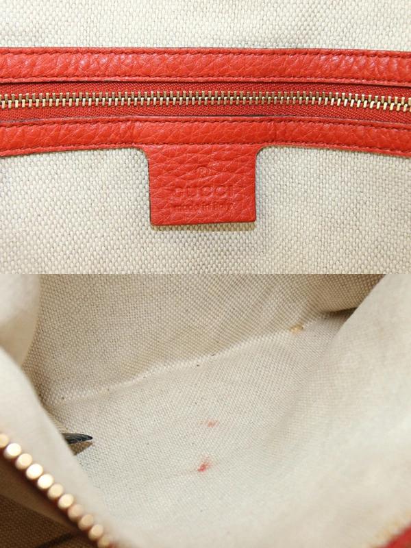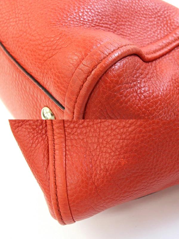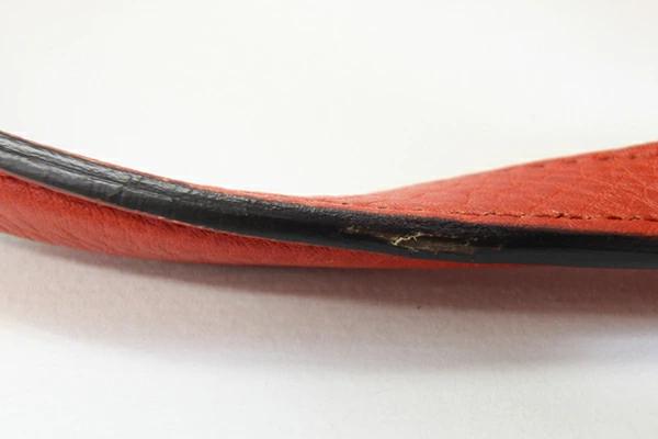 | 状態 | 外側:型崩れあり。所々スレ・小キズ・薄汚れあり。上部のフチ(コバ)にコーティング剥がれ・ヒビあり。 内側:レザー部分にスレ、薄汚れあり。ポケット内にシミ、赤い汚れあり。 金具:小キズ、スレあり。 |