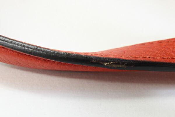 状態 | 外側:型崩れあり。所々スレ・小キズ・薄汚れあり。上部のフチ(コバ)にコーティング剥がれ・ヒビあり。 内側:レザー部分にスレ、薄汚れあり。ポケット内にシミ、赤い汚れあり。 金具:小キズ、スレあり。 |