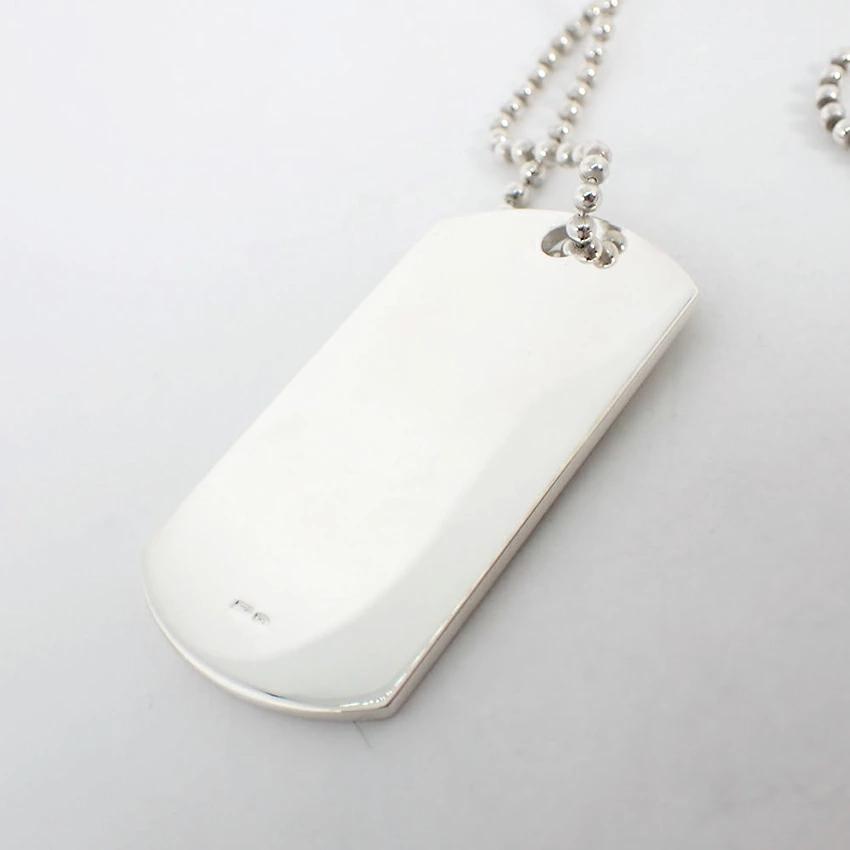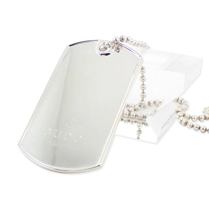 The thick ball chain is detachable. The screw clasp is also clearly engraved with GUCCI. This pendant features an impressive dog tag/plate.