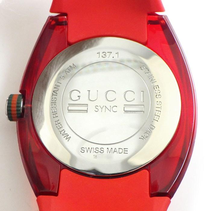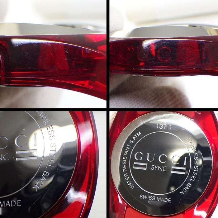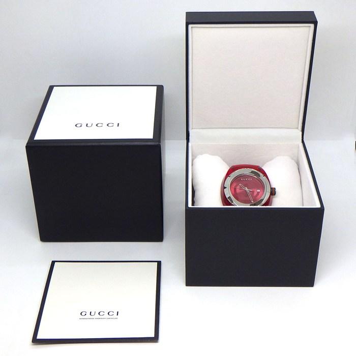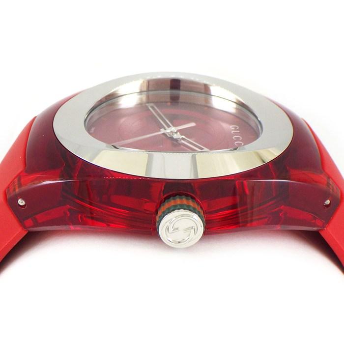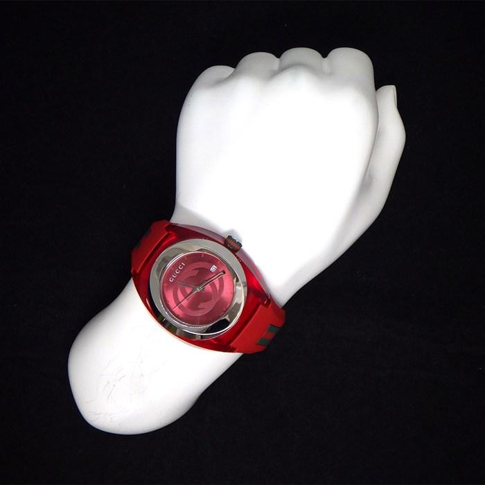 GUCCI 腕時計 シンク YA137103A/137.1 レッド文字盤 デイト SS ラバー クオーツアナログ 【中古】