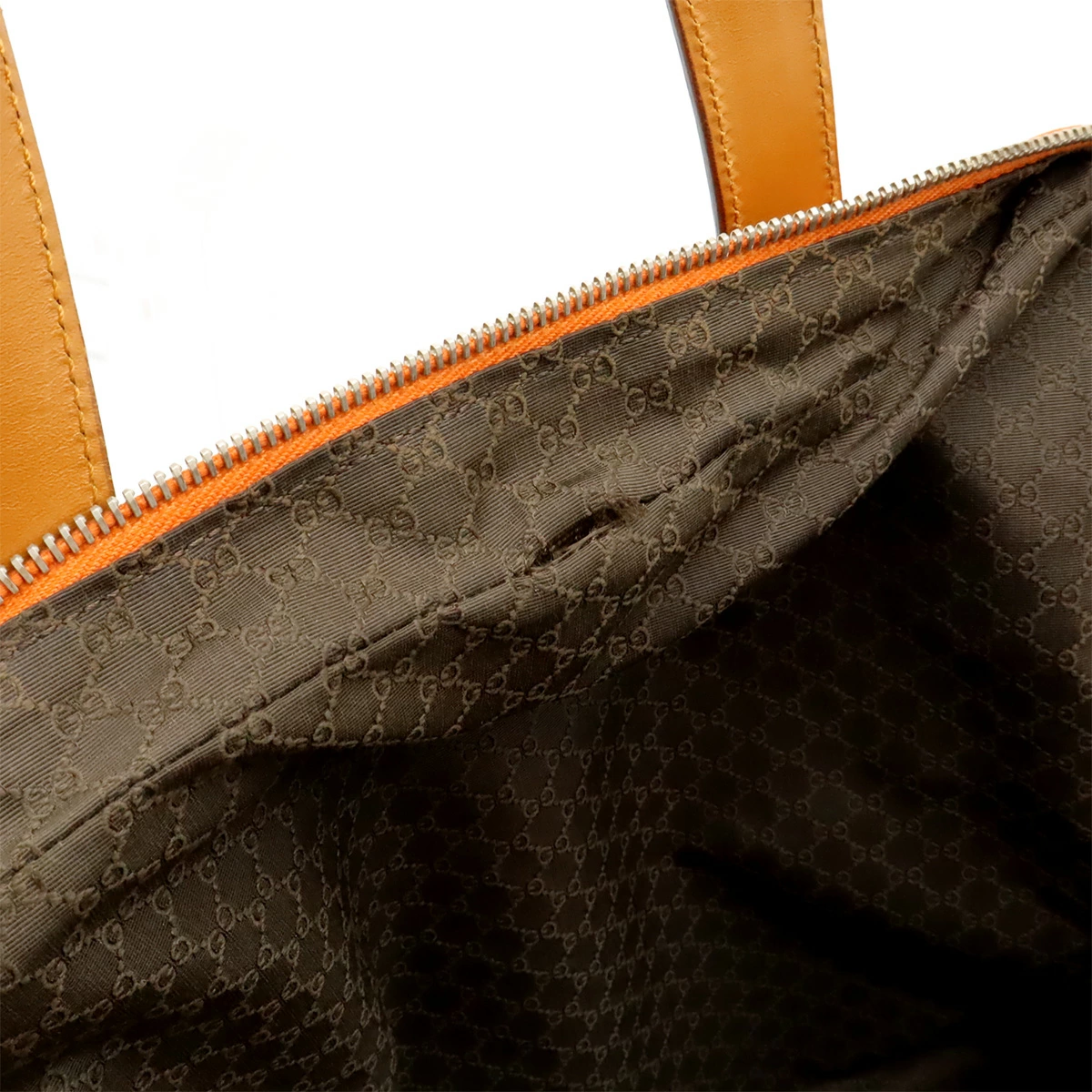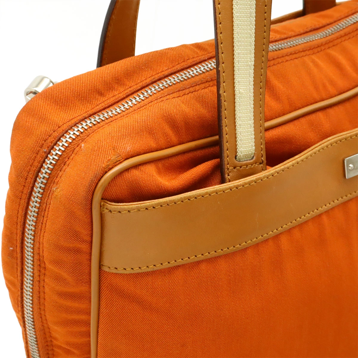 レザー部分スレ、角、間口黒ずみ、上部角擦り切れ、ポケット内端糸ホツレ