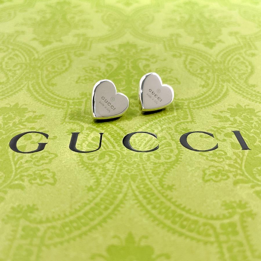 【GUCCI】より、トレードマークハートピアス。愛らしいハートモチーフが耳元を華やかに彩り、カジュアルからフォーマルまで幅広いスタイルにマッチします。