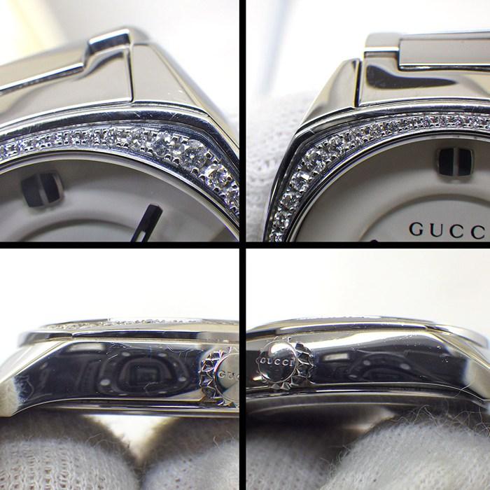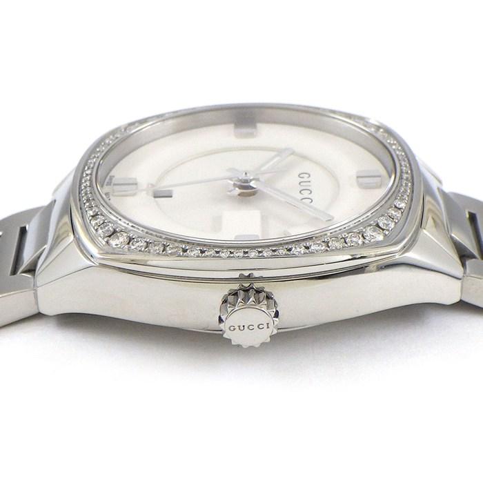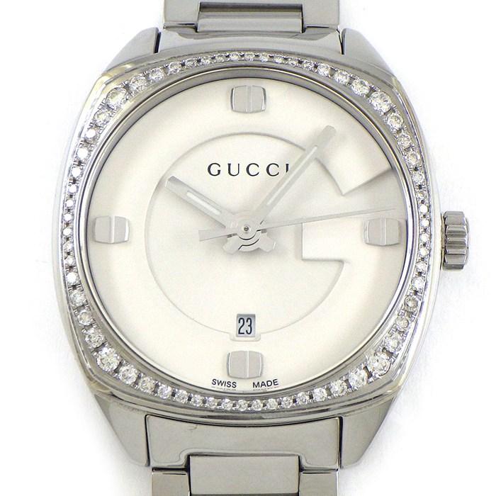 ■商品名GUCCI 腕時計 GG2570 142.5/YA142506 ダイヤベゼル アイボリー文字盤 デイト SS クオーツアナログ 【中古】